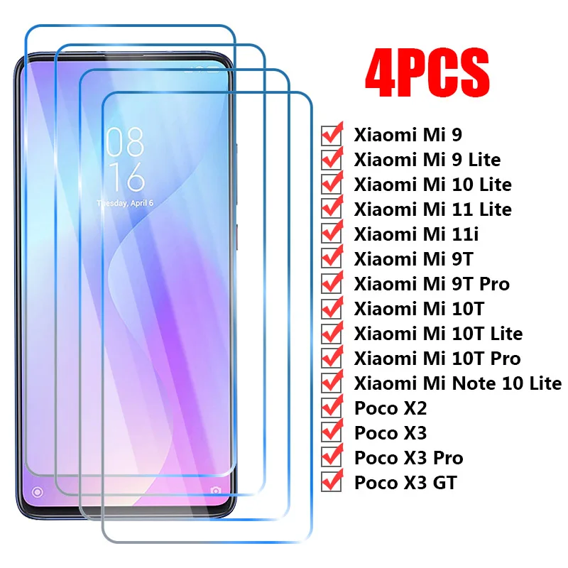 Защитное стекло для Xiaomi Mi 11 10 9 Lite 10T Lite 10T Pro 9T 9T Pro, Защитное стекло для экрана Xiaomi Poco X3 X3 GT X2 M3, 4 шт.
