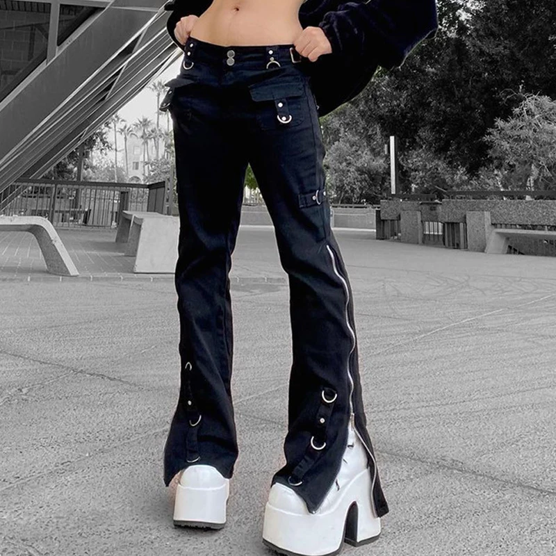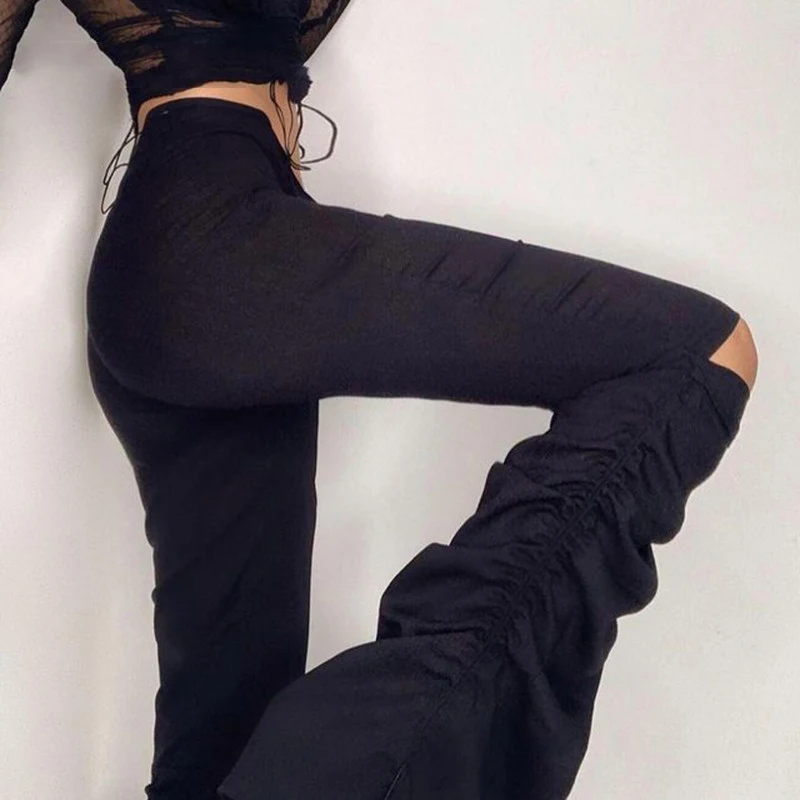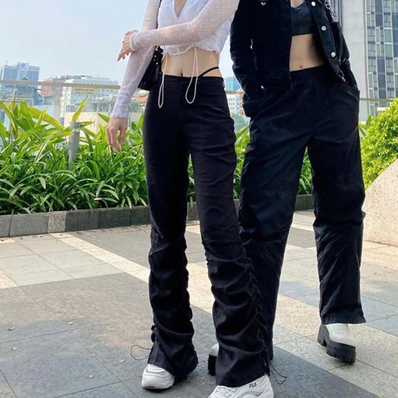 Bandage Chain Punk Baggy TrousersHight Waist Casual Pants