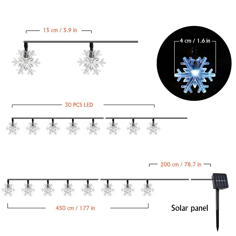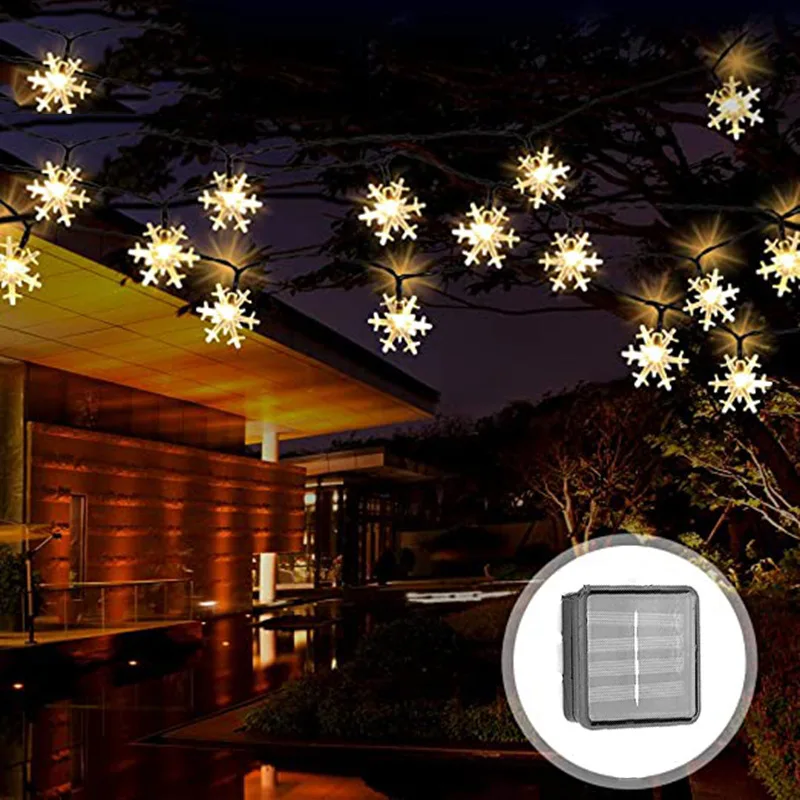 СВЕТОДИОДНАЯ Гирлянда со снежинками на солнечной батарее, сказочные огни для рождественской елки, вечеринки, дома, Сказочная Праздничная лампа