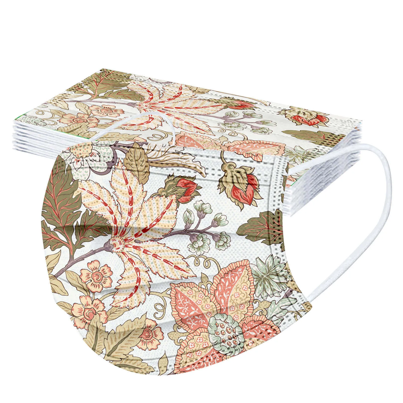 10 шт., одноразовые маски для лица с цветочным принтом