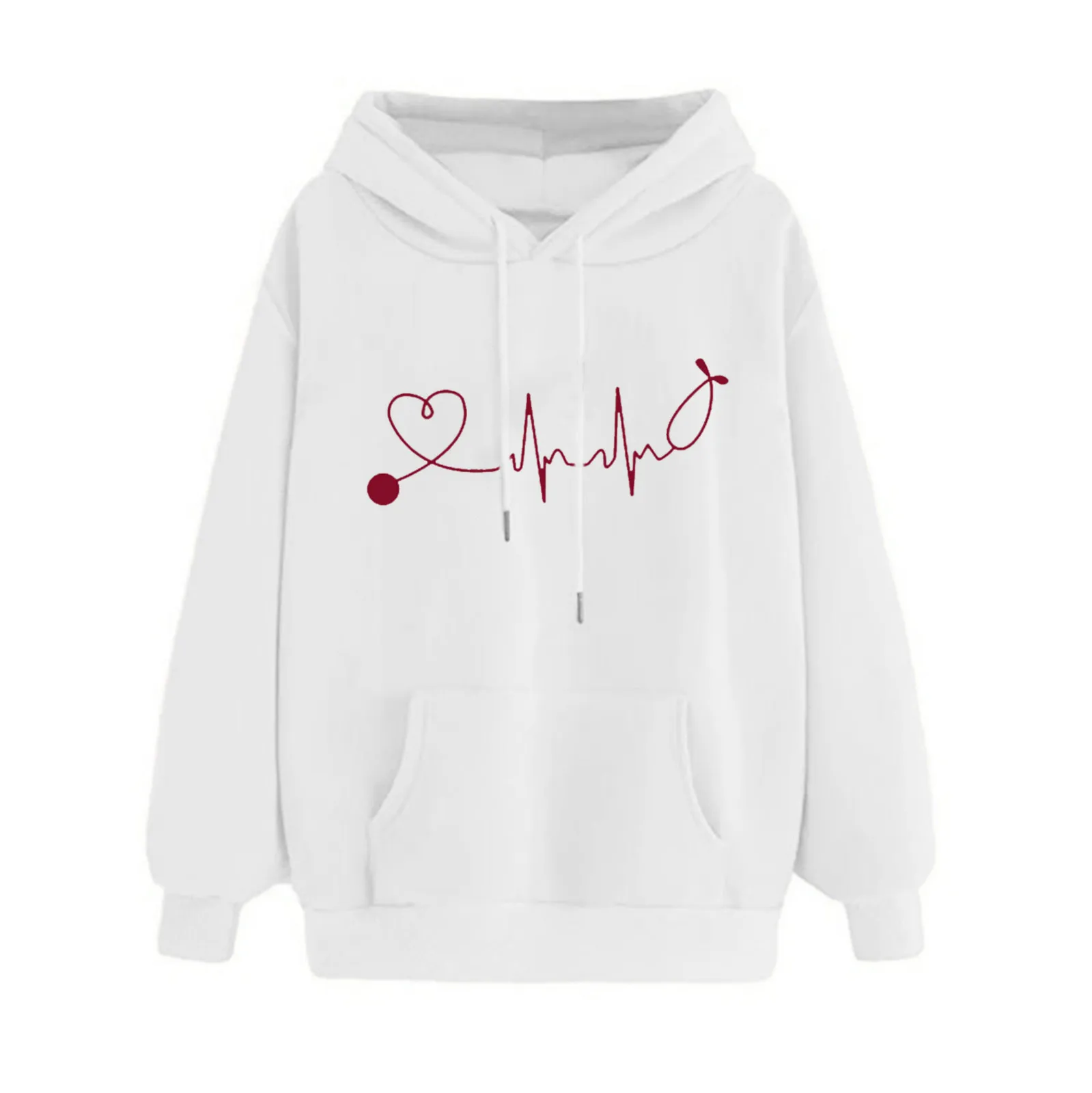 Толстовка Женская белая осенне-зимняя Толстовка Свитшот пуловер Топы с длинным рукавом Удобная винтажная спортивная верхняя одежда
