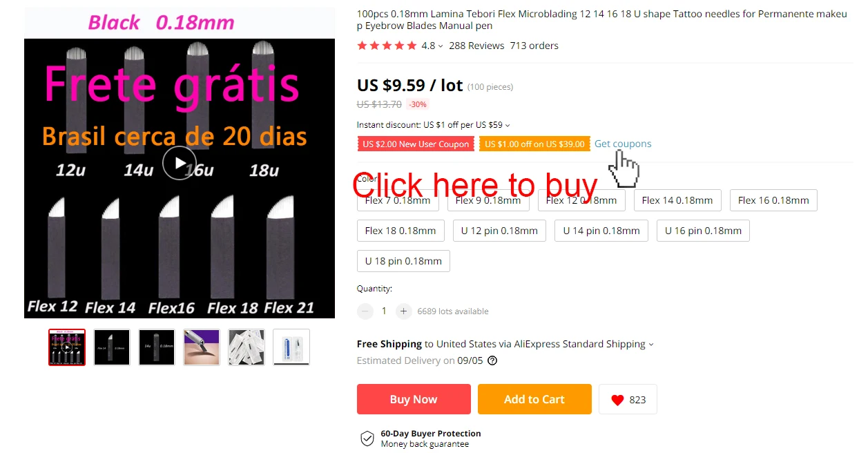 Микроблейдинг 100 шт 0,35*50 мм набор игл для тату с 100 шт маленькие иглы для перманентного макияжа тату бровей губ машины
