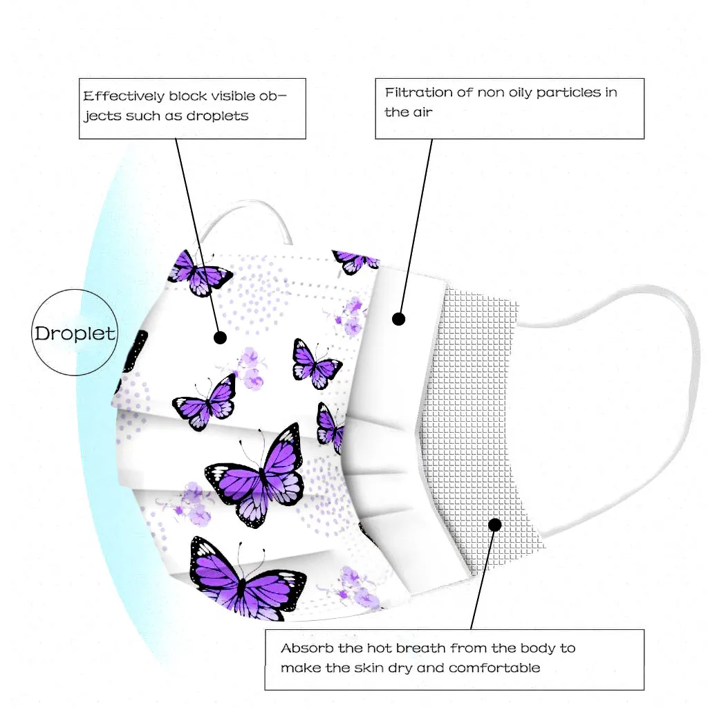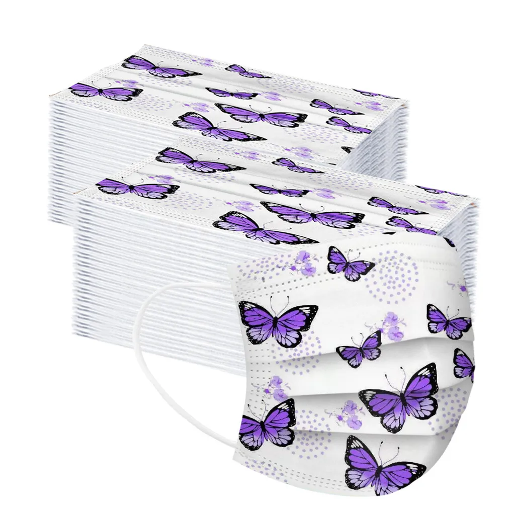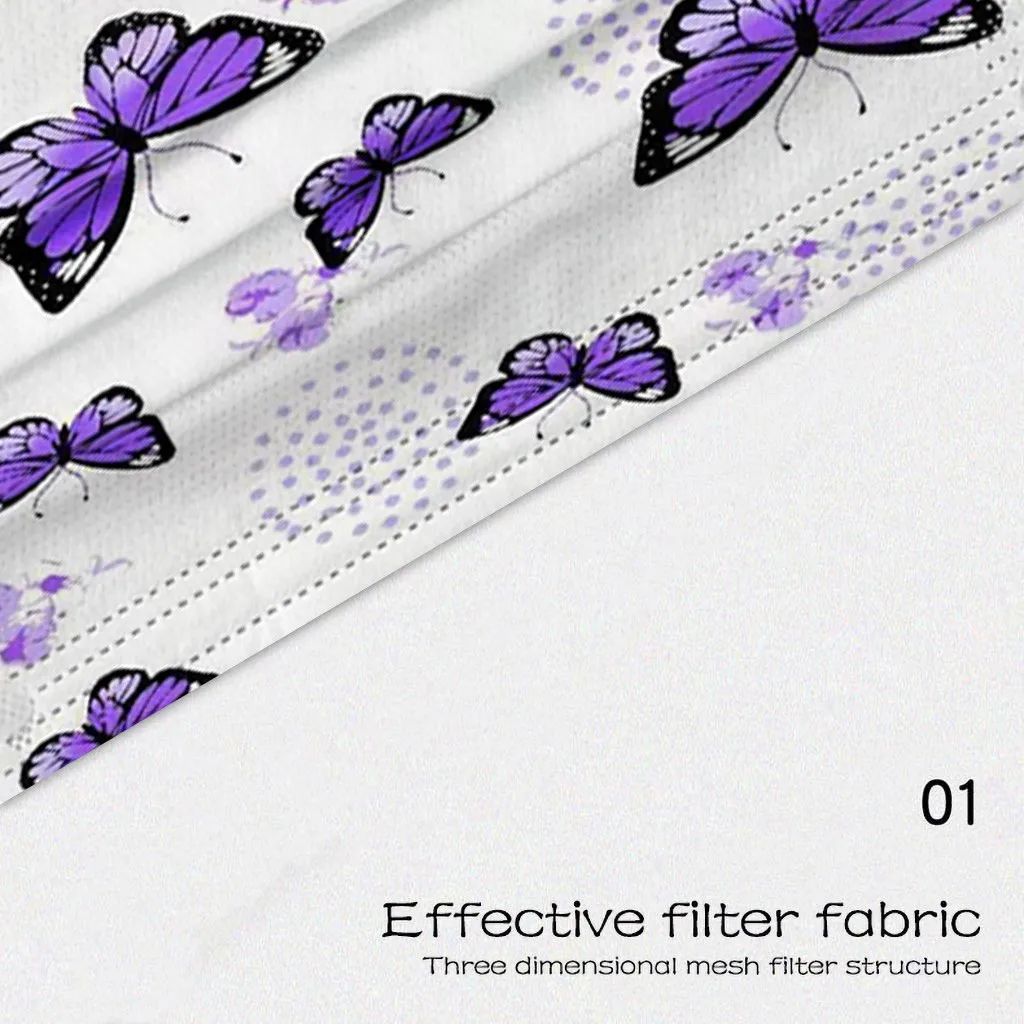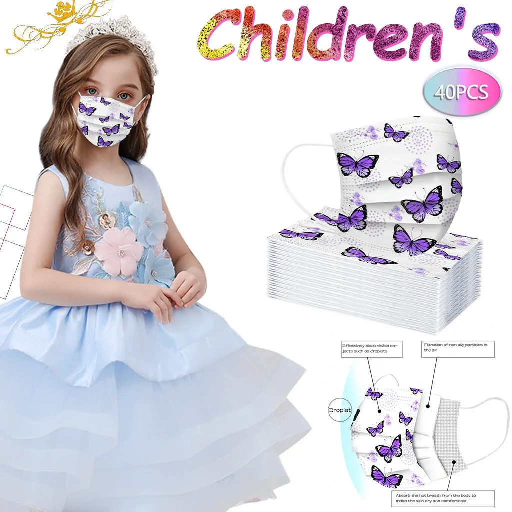 Детская фиолетовая маска-бабочка, одноразовая маска для лица, промышленная 3-слойная маска