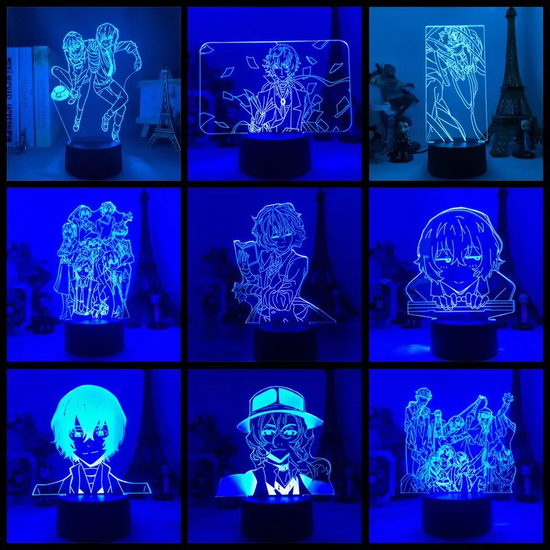 Светодиодный ночсветильник в стиле аниме для Бунго бродячих собак накахара чуя дазай Осаму ПВХ usb светящаяся фигурка Коллекционная модель игрушечная статуя 3D tamp