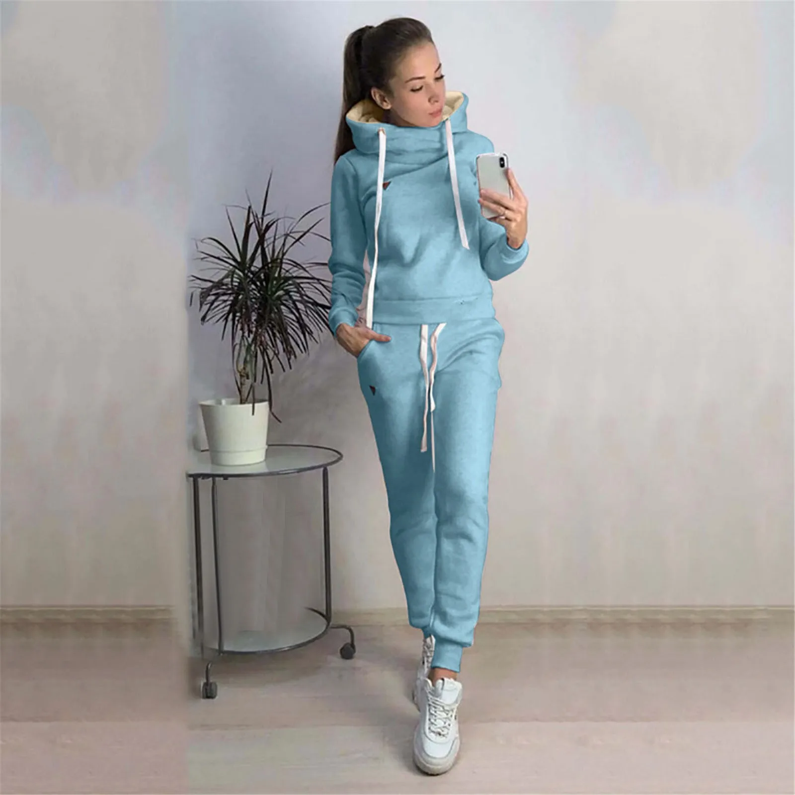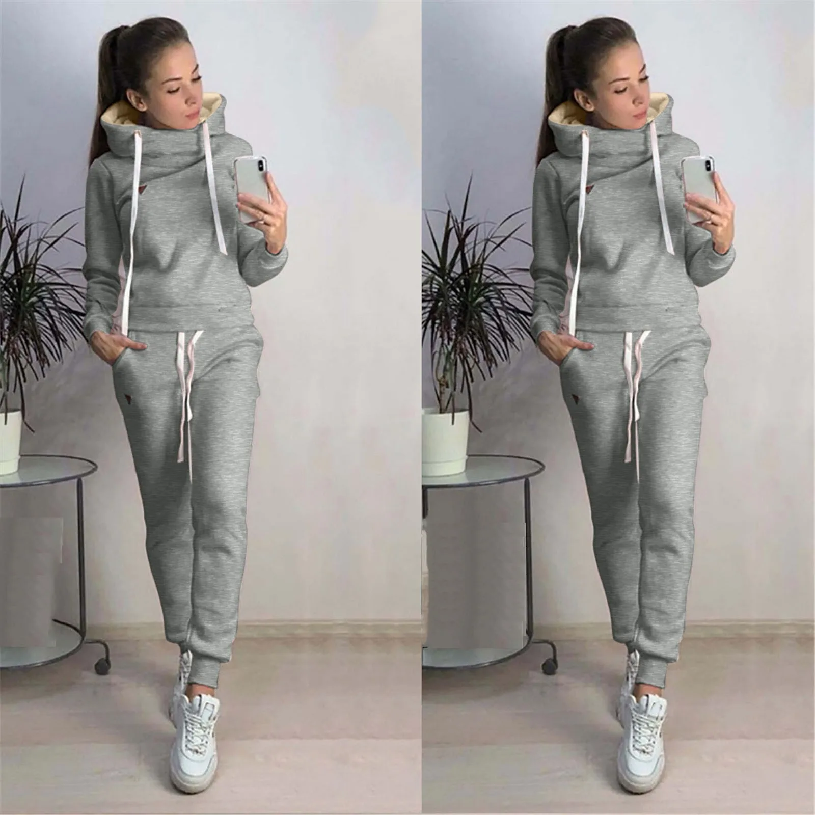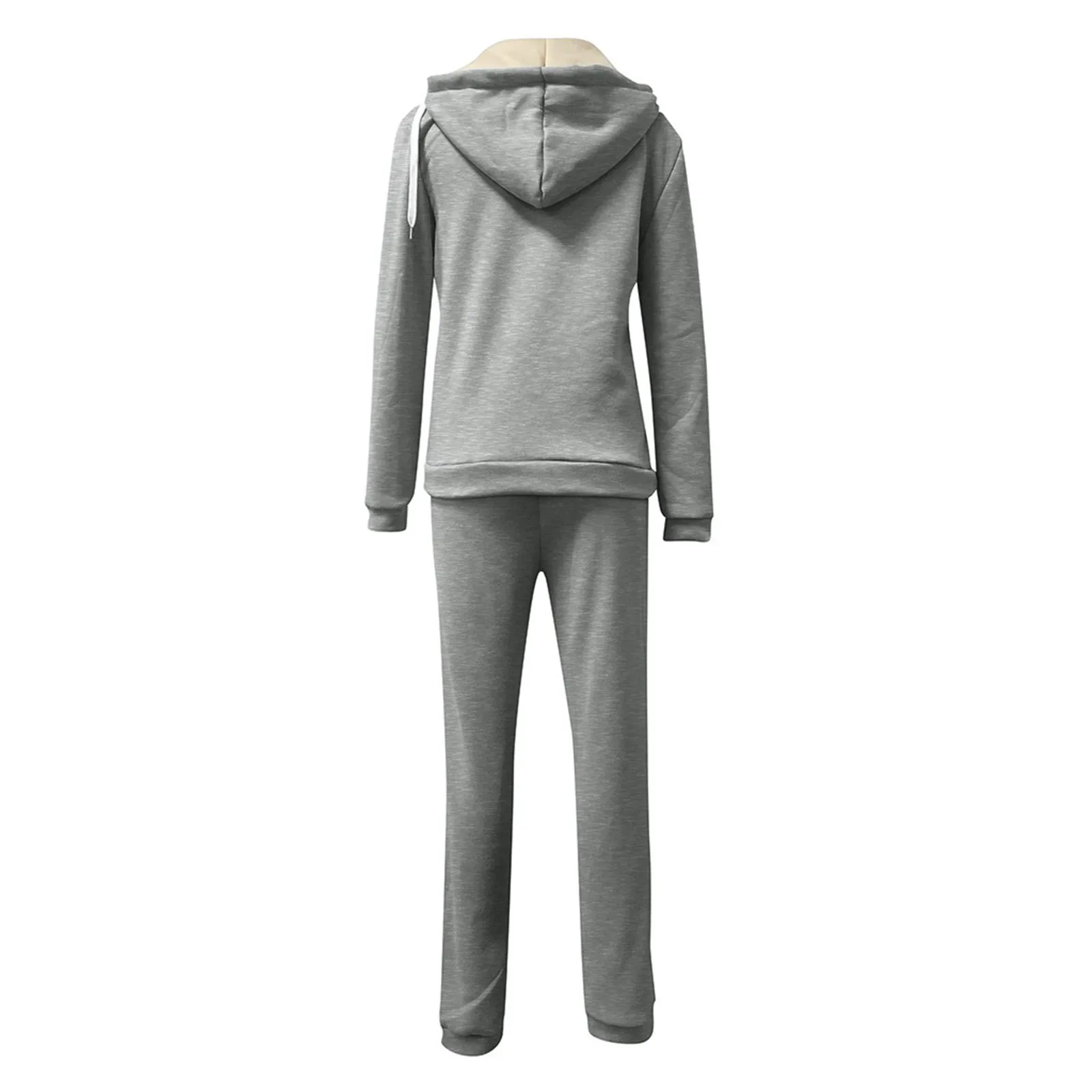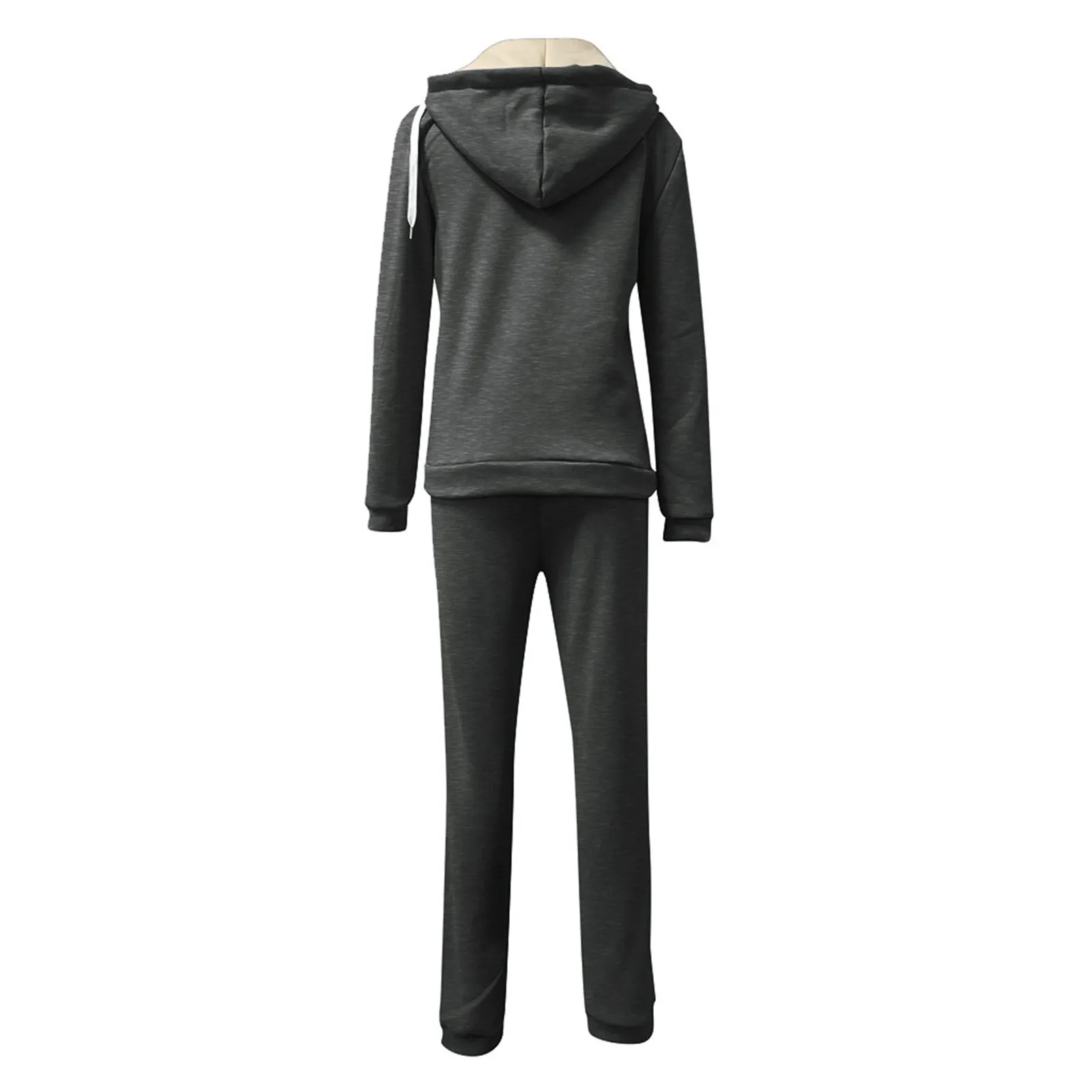 Женский Повседневный однотонный спортивный топ с капюшоном и длинными рукавами, комплект с длинными штанами