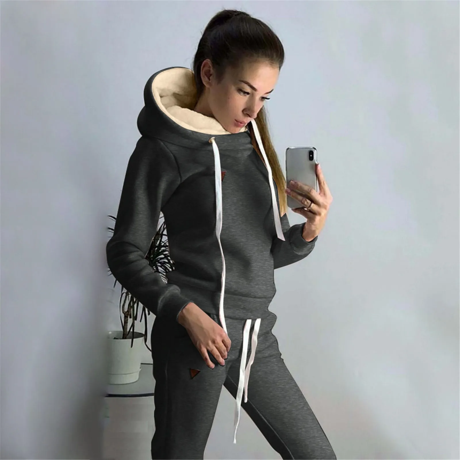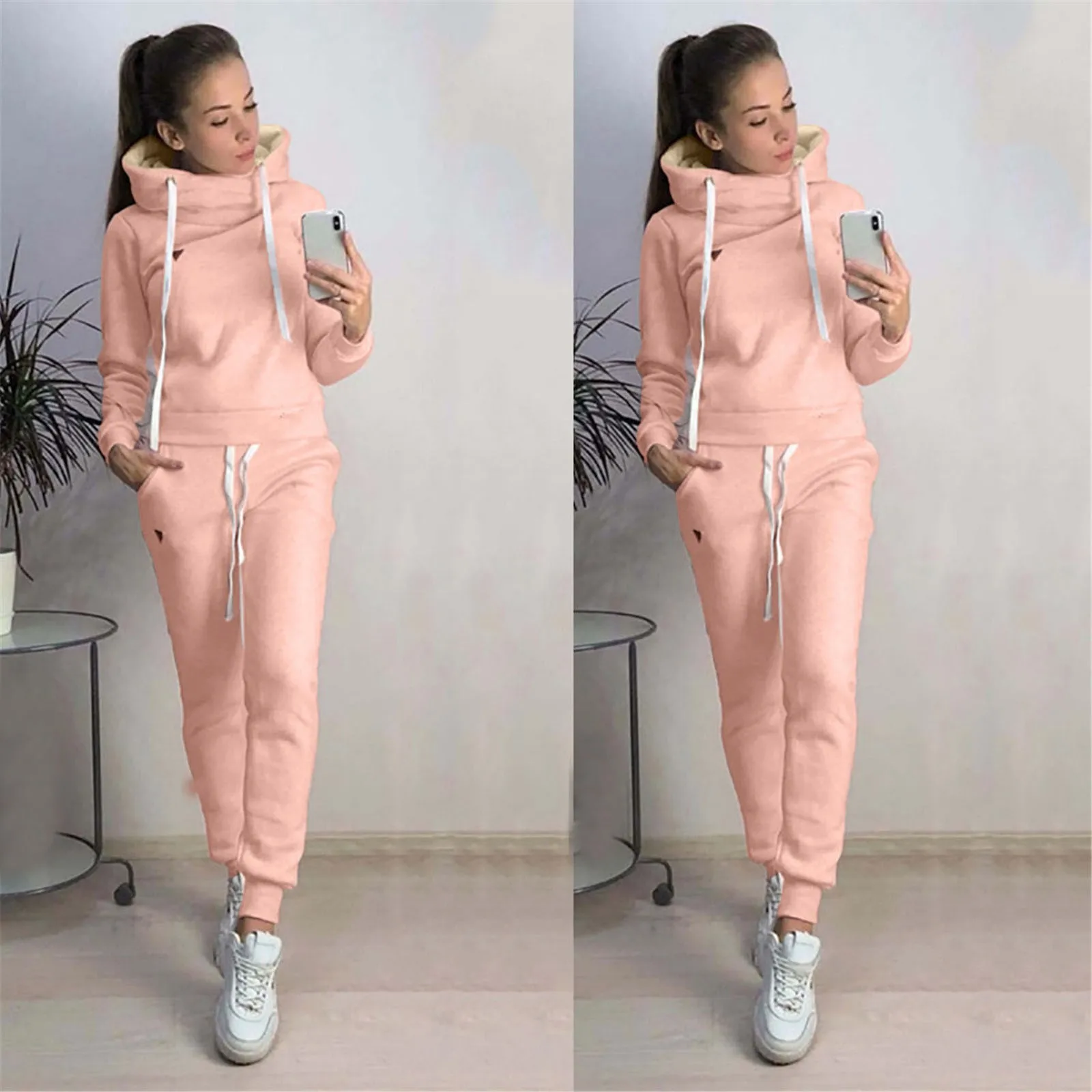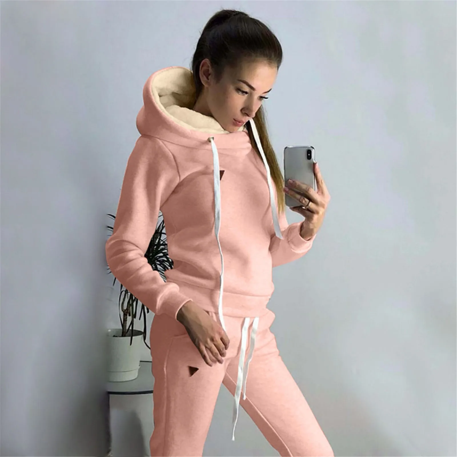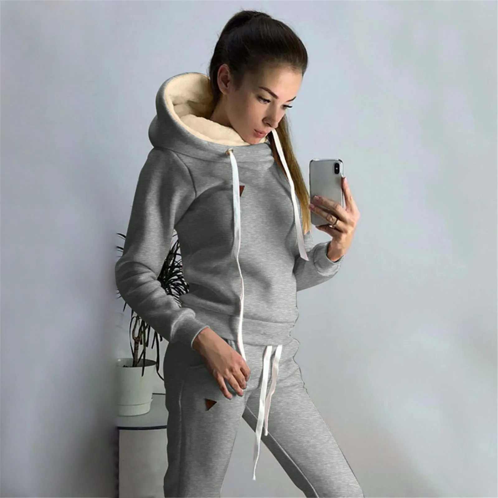 Модный комплект из 2 предметов, новинка, Женский плюшевый теплый костюм для бега, Женский облегающий брючный комплект