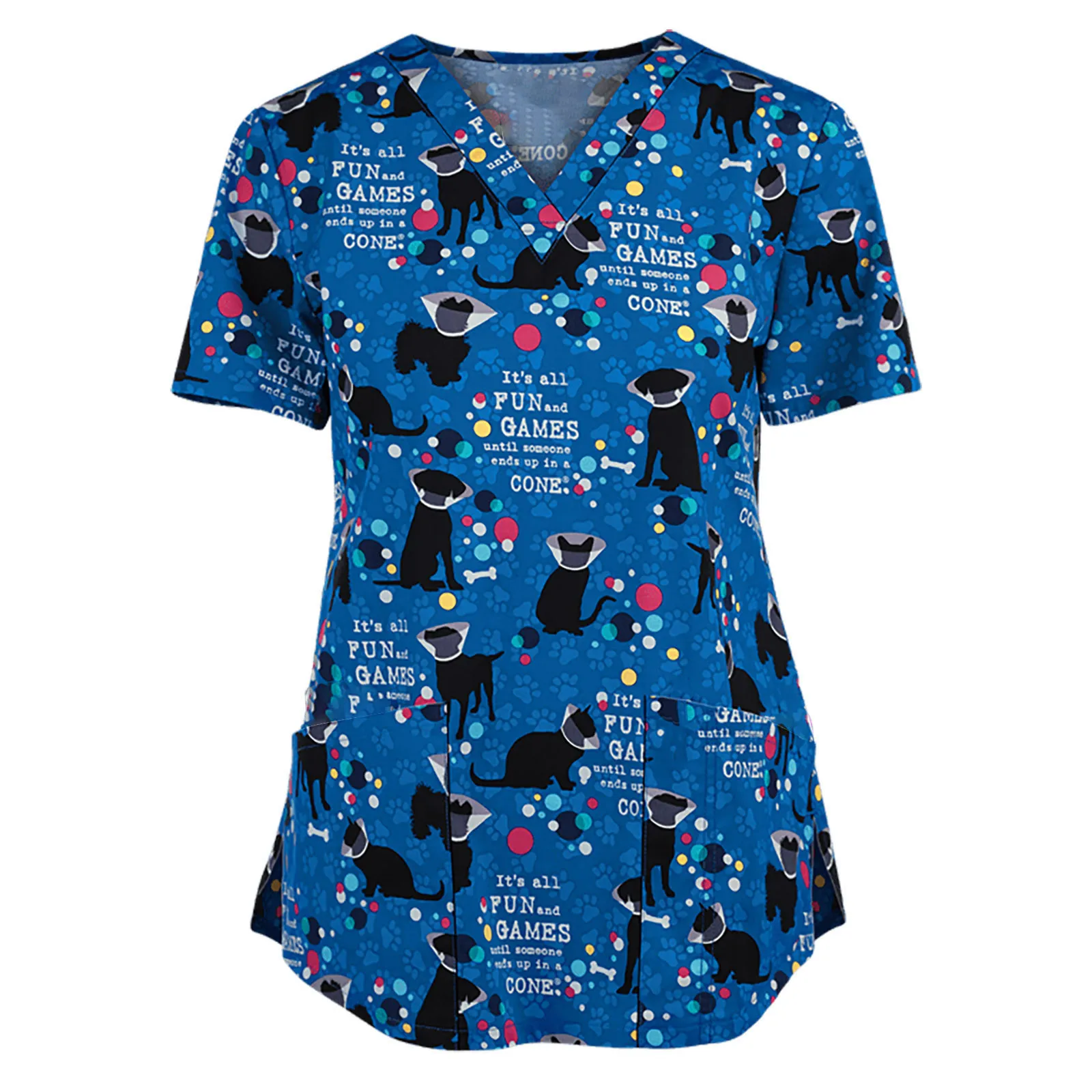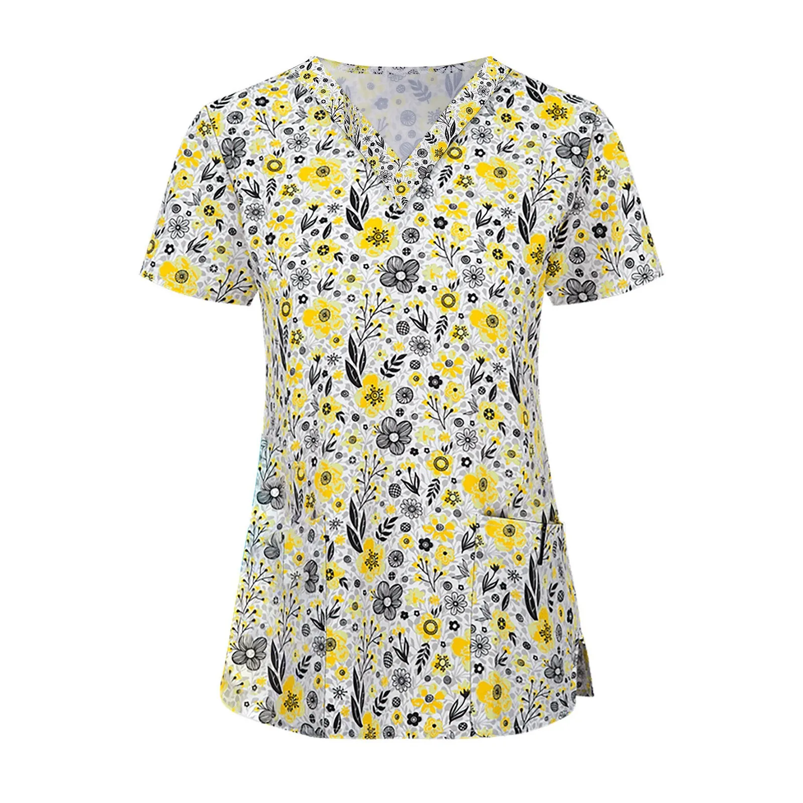 Униформа медсестры, женская блузка с коротким рукавом, с мультяшным принтом, Рабочая спецодежда, медицинская униформа для медсестры, рубашки, женские скрабы, топы