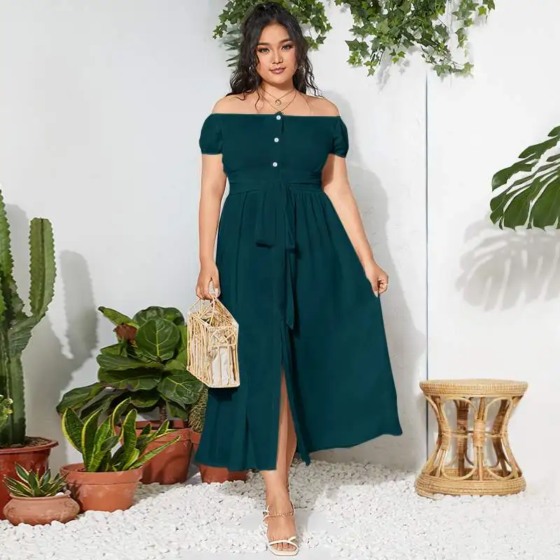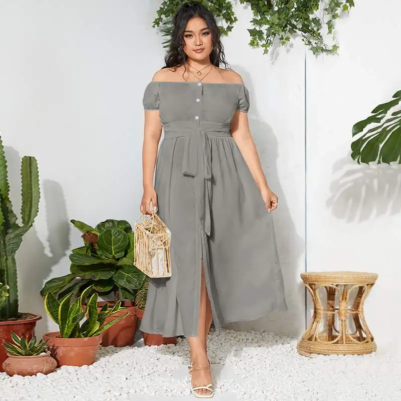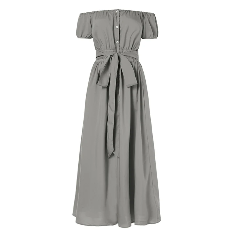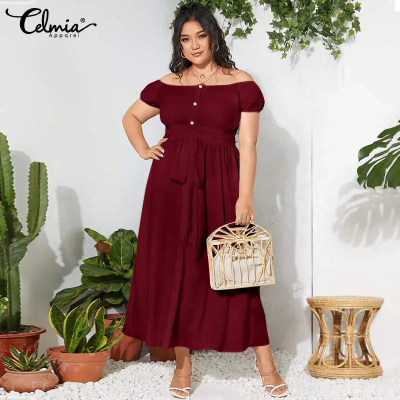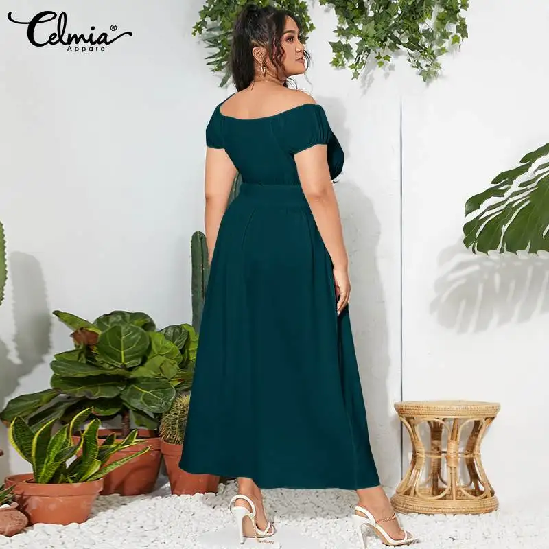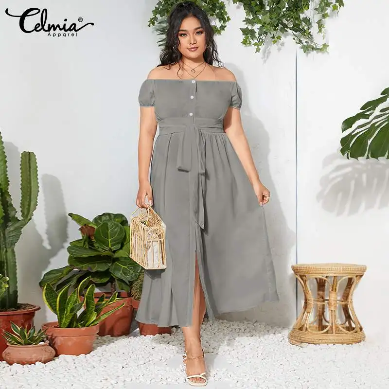 2021 Celmia летнее платье-макси с поясом и разрезом, женское богемное сексуальное платье с открытыми плечами, повседневное однотонное длинное платье на пуговицах, женское платье