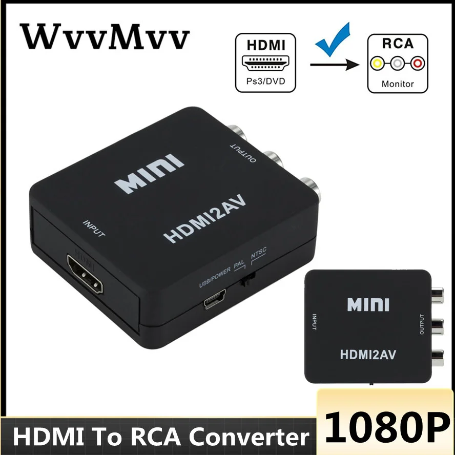 Адаптер скалера WVVMVV HDMI-совместимый с AV, композитный преобразователь HD-видео в RCA AVCVSB LR 1080P, поддержка PAL NTSC