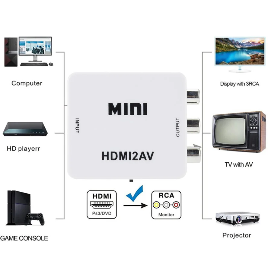 Чтобы помочь пользователям конвертировать высококачественный видеосигнал HDMI в обычный CVBS сигнал (стандартное разрешение 480i, 576i,). Он может воспроизводить на ТВ, VHS видеомагнитофон, DVD рекордеры и т. Д. И поддерживает NTSC и PAL два ТВ-формата.