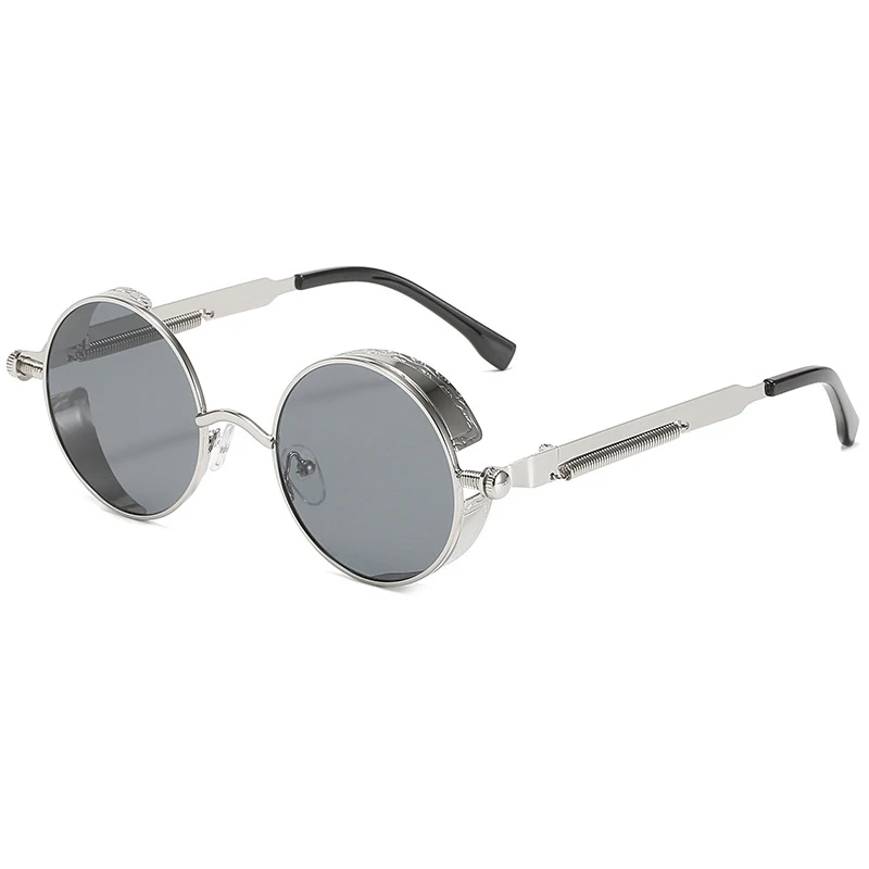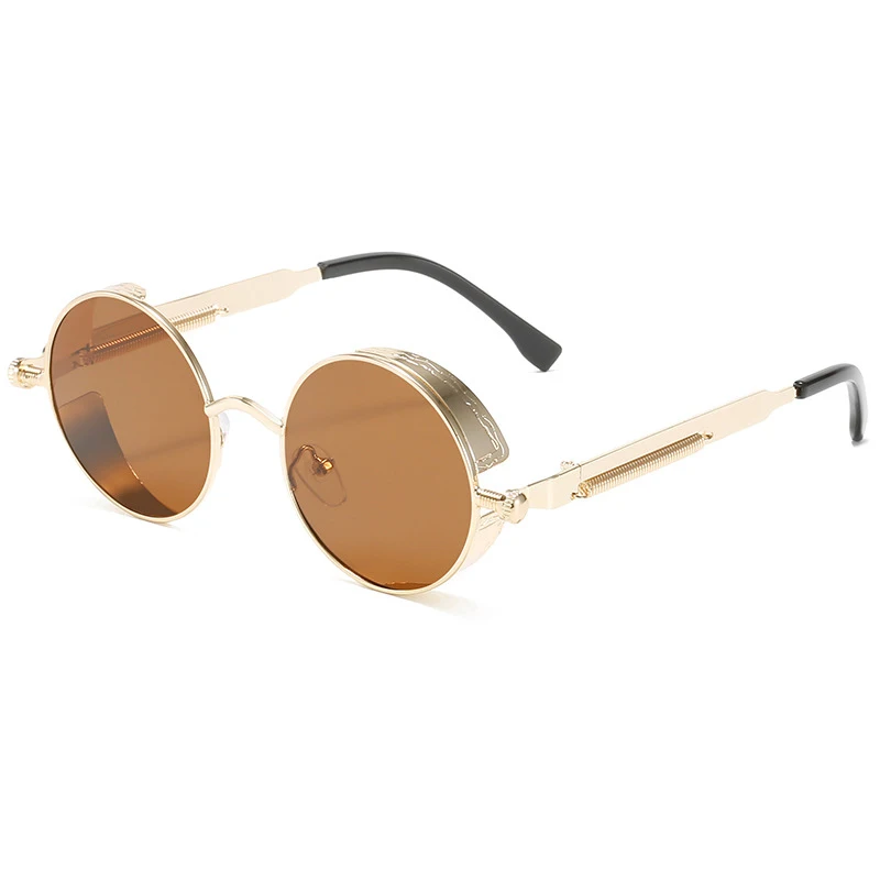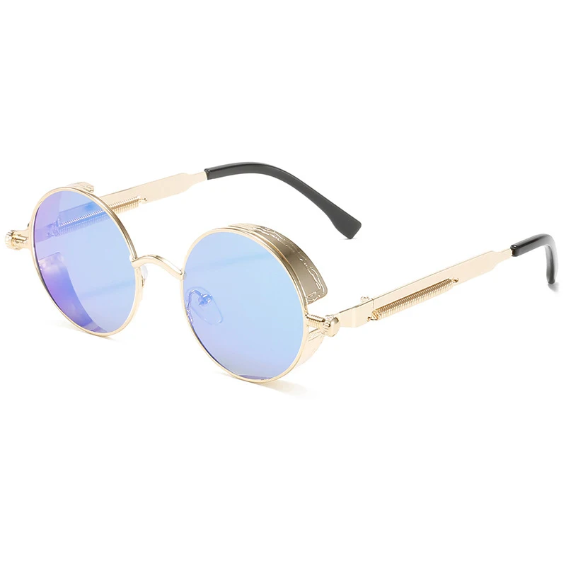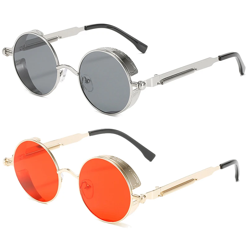 Очки солнцезащитные круглые в стиле стимпанк для мужчин и женщин, Классические готические брендовые дизайнерские ретро солнечные очки с цветными линзами в круглой металлической оправе