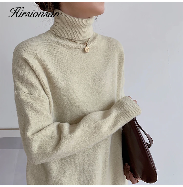 Свитер женский кашемировый с воротником-хомутом, свободный