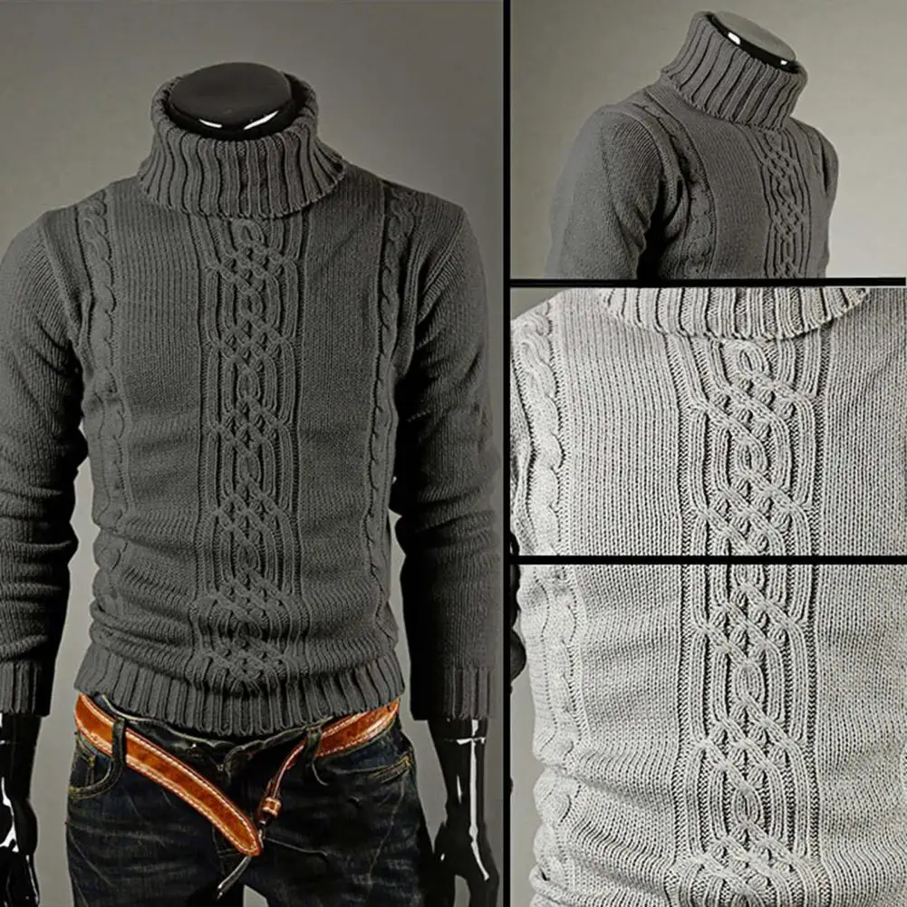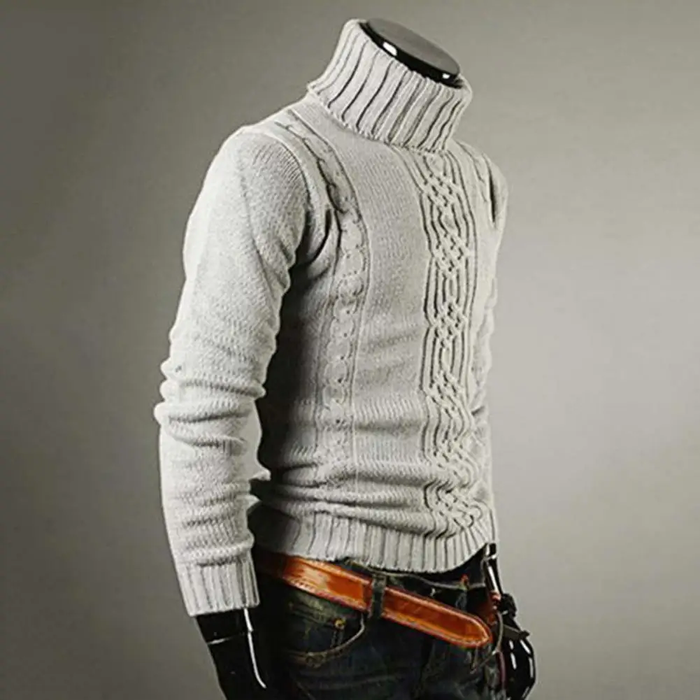 Удобный мужской облегающий свитер с высоким воротником, Повседневны...