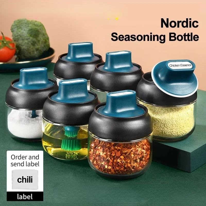 Встроенная банка для приправ с крышкой для ложки, влагостойкий стеклянный шейкер для соли с ложкой, бутылка MSG, коробка для приправ, банка для приправ с этикеткой