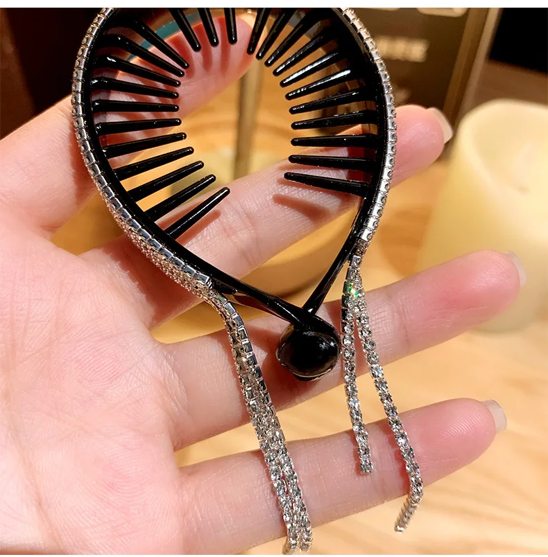 Новинка 2022, модная стяжка Стразы с бахромой для конского хвоста, зажим для волос для захвата, аксессуары для женщин и девушек, головной убор