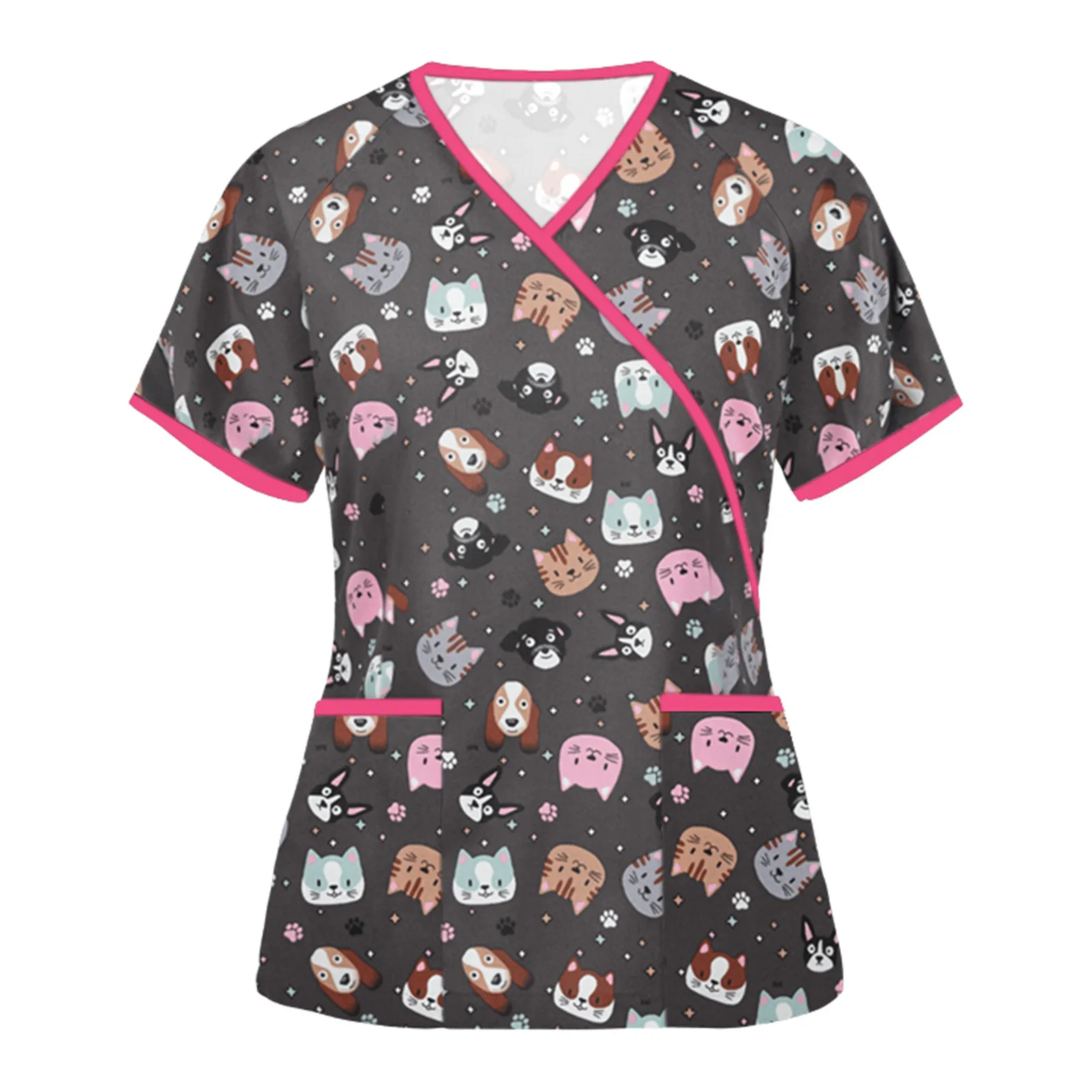 Униформа медицинская эластичная с мультяшным принтом, с коротким рукавом