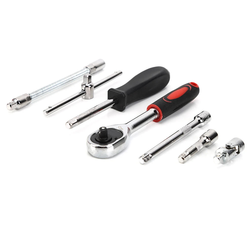 3. Быстро уроните храповой ключ (Регулируемый Положительный и отрицательный), кнопка с функцией быстрого снятия обеспечивает безопасную фиксацию гнезда THT во время использования, но также позволяет легко снять или быстро заменить гнездо EVEV жирными или жирными пальцами. Наш высококачественный храповый механизм с 45 зубьями увеличивает скорость работы. Это идеальный набор инструментов для открытия дросселей, которые обычно используются для установки небольших винтов и гаек в кондиционерах, гайках седла клапанов, крыльцах шин, дверных замках автомобиля, И домашние хозяйства (в основном включены).