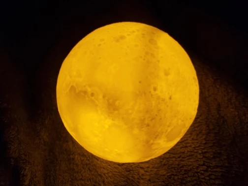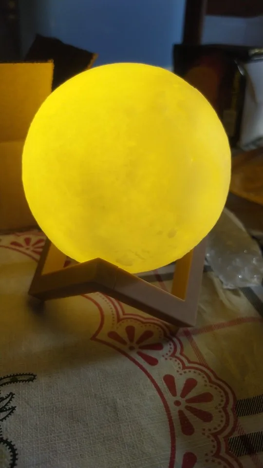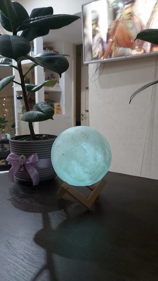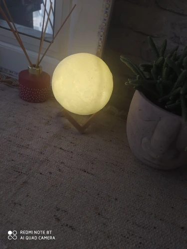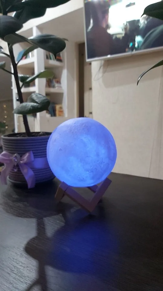 Я недовольна покупкой: 1) во-первых, луна не стоит своих денег,выглядит дешево как из Fixprice 2) во-вторых, цвет нельзя переключать. Я думала,что цвет можно будет менять кнопкой или пультом, но цвета сами меняются,так что нельзя использовать как светильник. Постоянно меняющиеся цвета раздражают больше. 3) свет очень тусклый и это нельзя изменить,опять же нельзя использовать как светильник или ночник. Вывод: совершено пустая трата денег. В выключенном режиме выглядит красивее как часть декора. Не более. Не рекомендую!