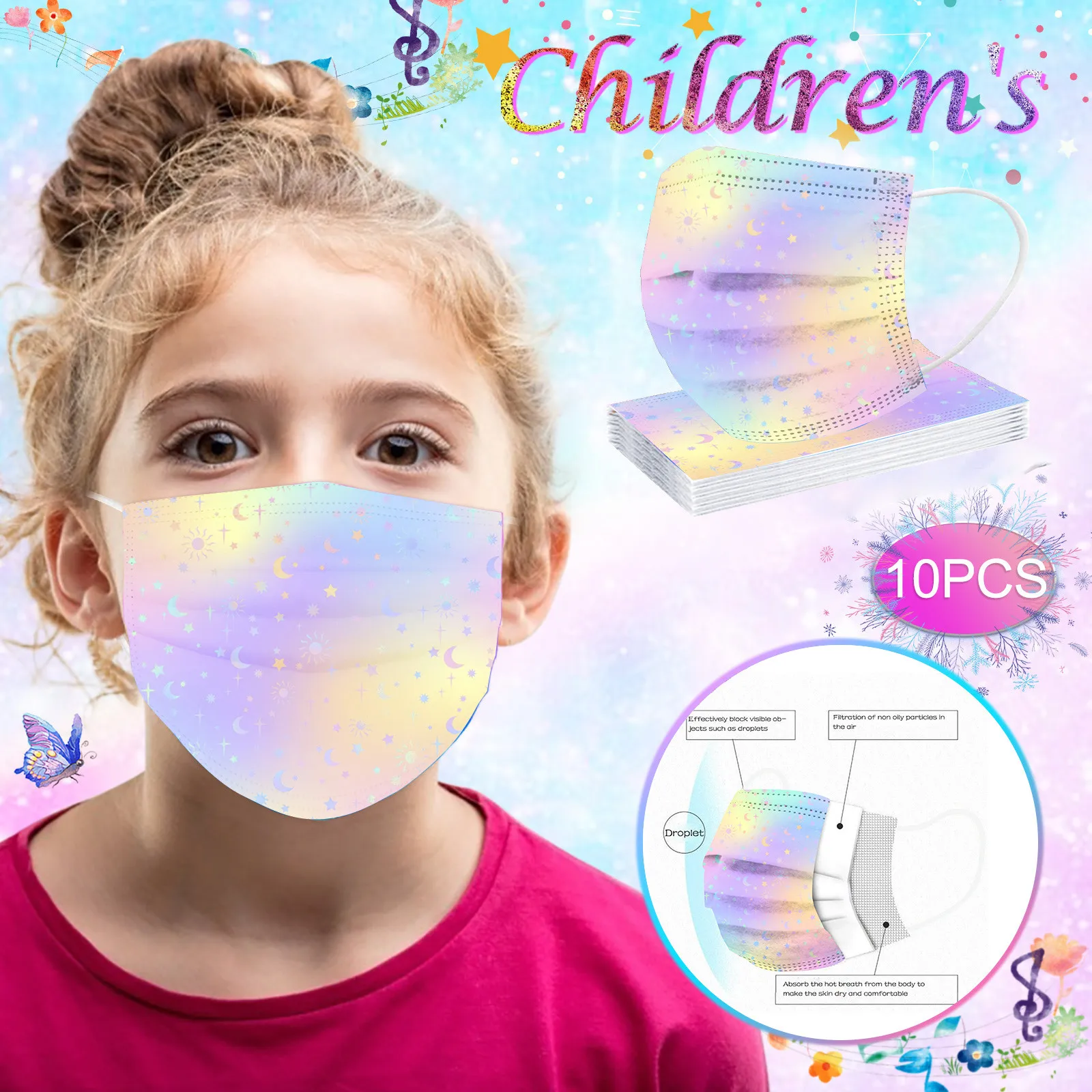 10 цветов, детская разноцветная одноразовая маска для лица для мальчиков и девочек, наружная защита, промышленные трехслойные защитные маски для рта