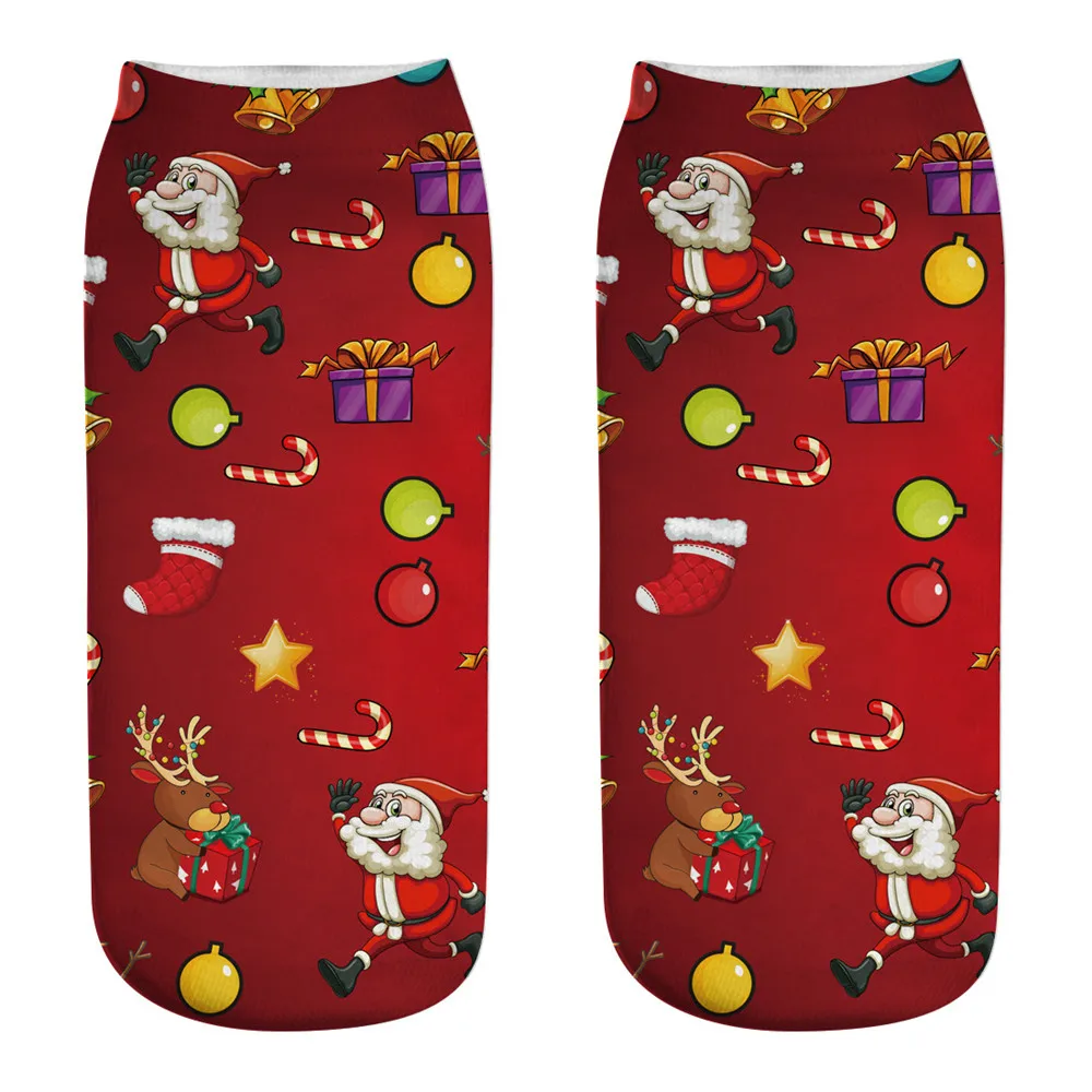 Новогодние 2022 рождественские носки с 3D принтом Санта-Клаус Лось ...