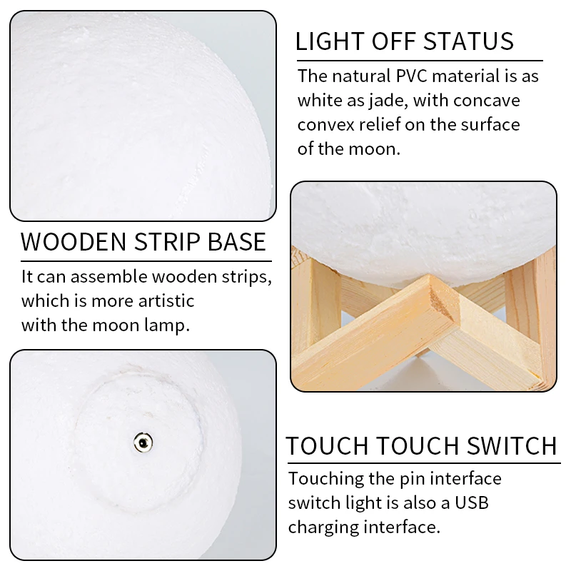 Особенности:** Светильник 3D moon: сделан с технологией 3D печати, реалистичной формой полной луны, поверхность лунной лампы очень близко к лунной Луне, новинка и очаровательная и стильная.** Широко используется: это идеальный декоративный светильник или подарок на Рождество, День благодарения, дни рождения, вечерние, свадебные, юбилейные, спальню, гостиную, детей, детскую спальню, столовую и наружное украшение.** Идеальный подарок: это любимый подарок для ваших друзей или любимых. И это также отличное украшение для вашего дома.** Питание от аккумулятора: Он питается от 3 IR44 кнопочных элементов, удобен и прост в использовании. (аккумулятор не входит в комплект)