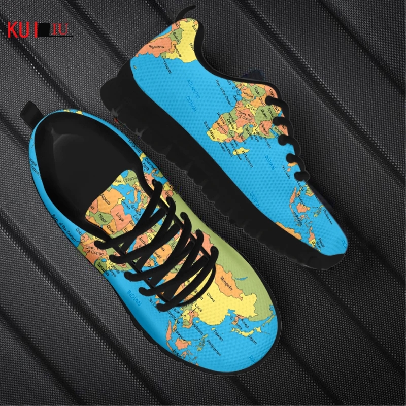 Новинка, модная спортивная обувь KUILIU с рисунком карты мира, мужские и женские сетчатые вязаные легкие кроссовки для бега, прогулок