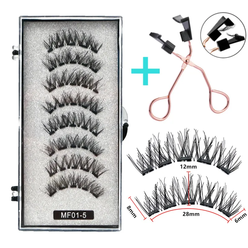 Магнитные ресницы с 5 магнитами, норковые Накладные ресницы ручной работы 3D, многоразовые, с магнитным пинцетом, 8 шт.2 пары