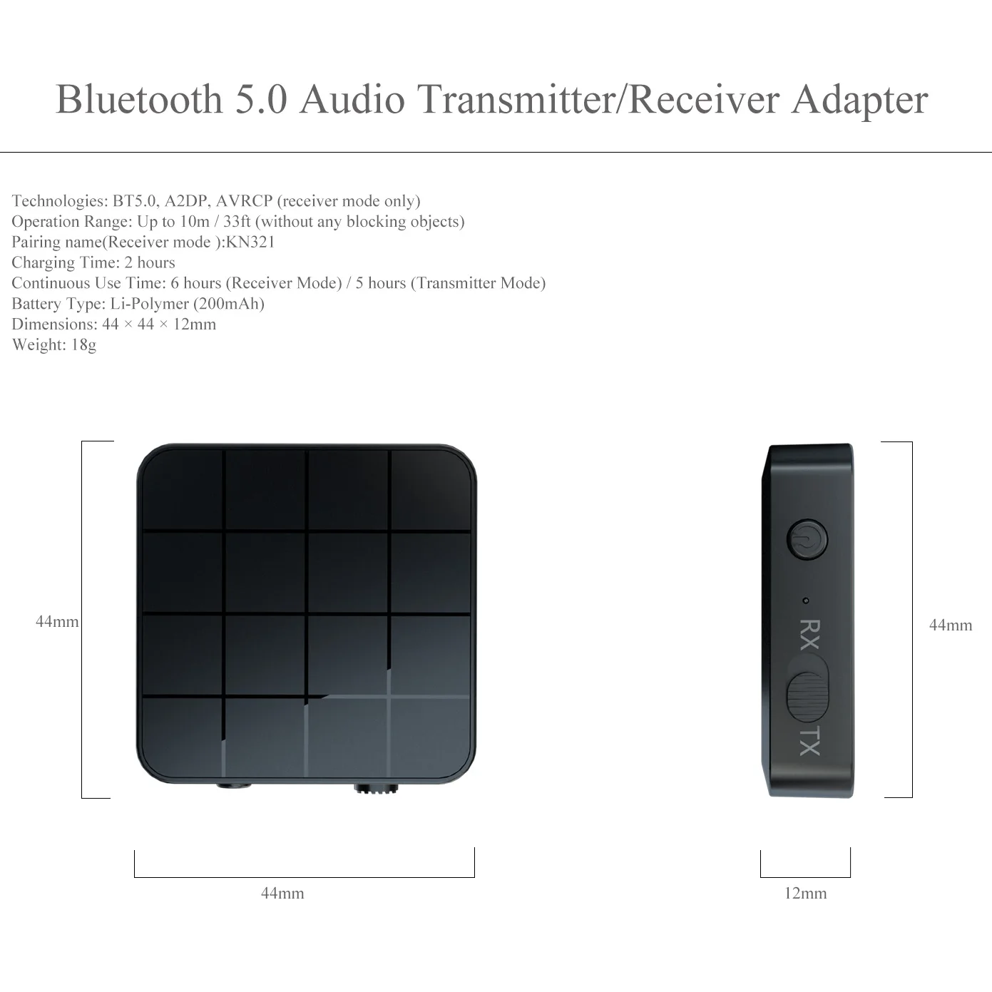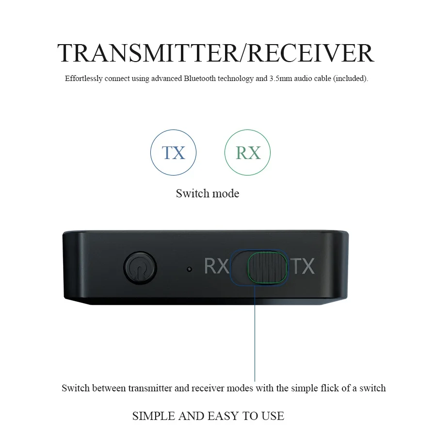 Этот передатчик-приемник маленький, квадратный и совершенный. Bluetooth 5 работает быстро. Есть переключатель для выбора Tx или Rx, что действительно очень удобно.