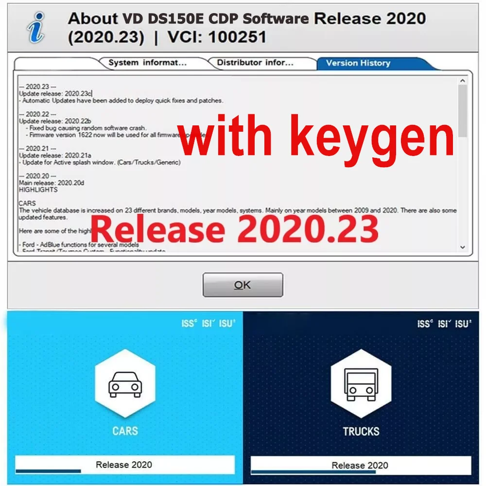 Программное обеспечение для генератора ключей vd ds150e cdp 2020,23...