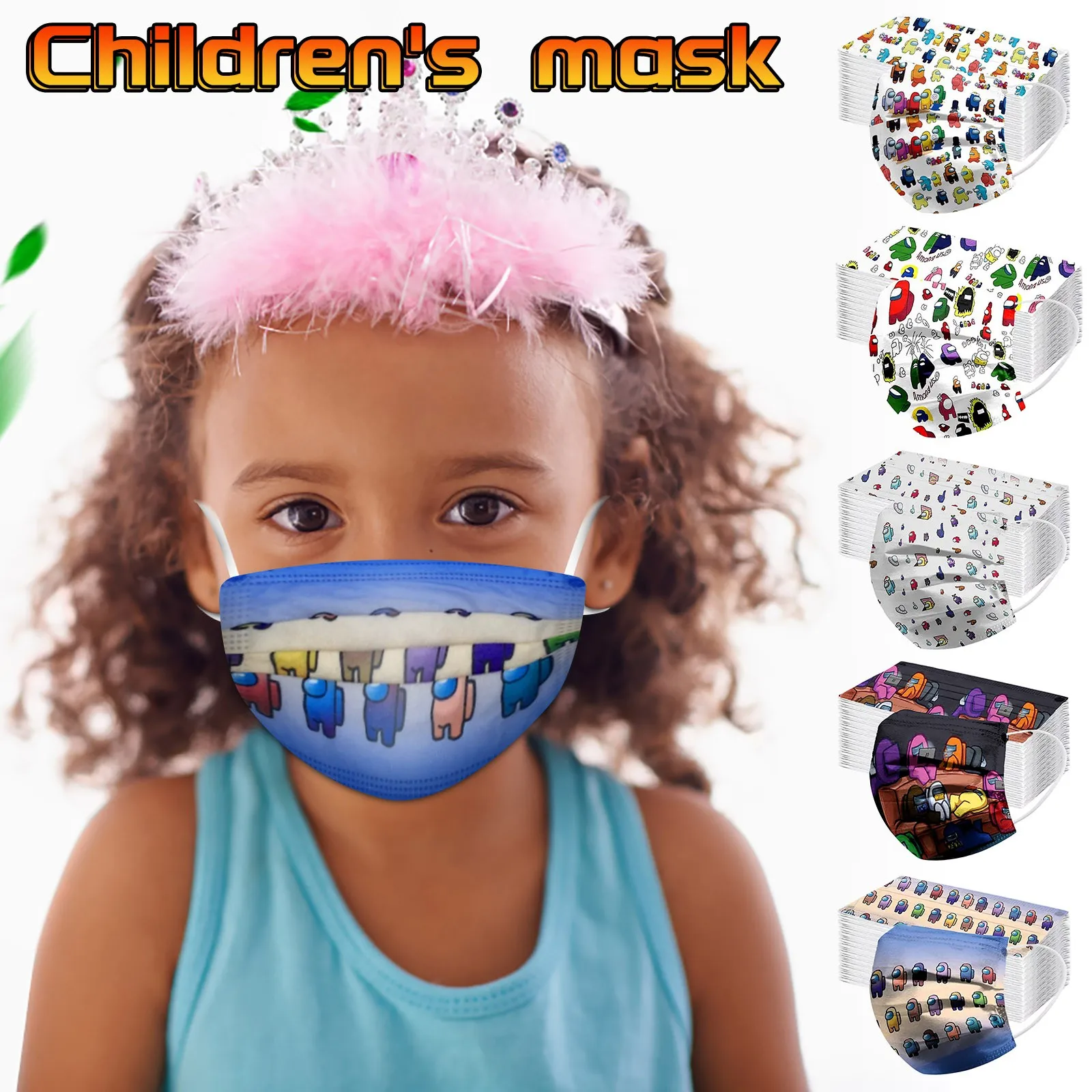 1050 шт., детская трехслойная маска для лица с мультяшным принтом