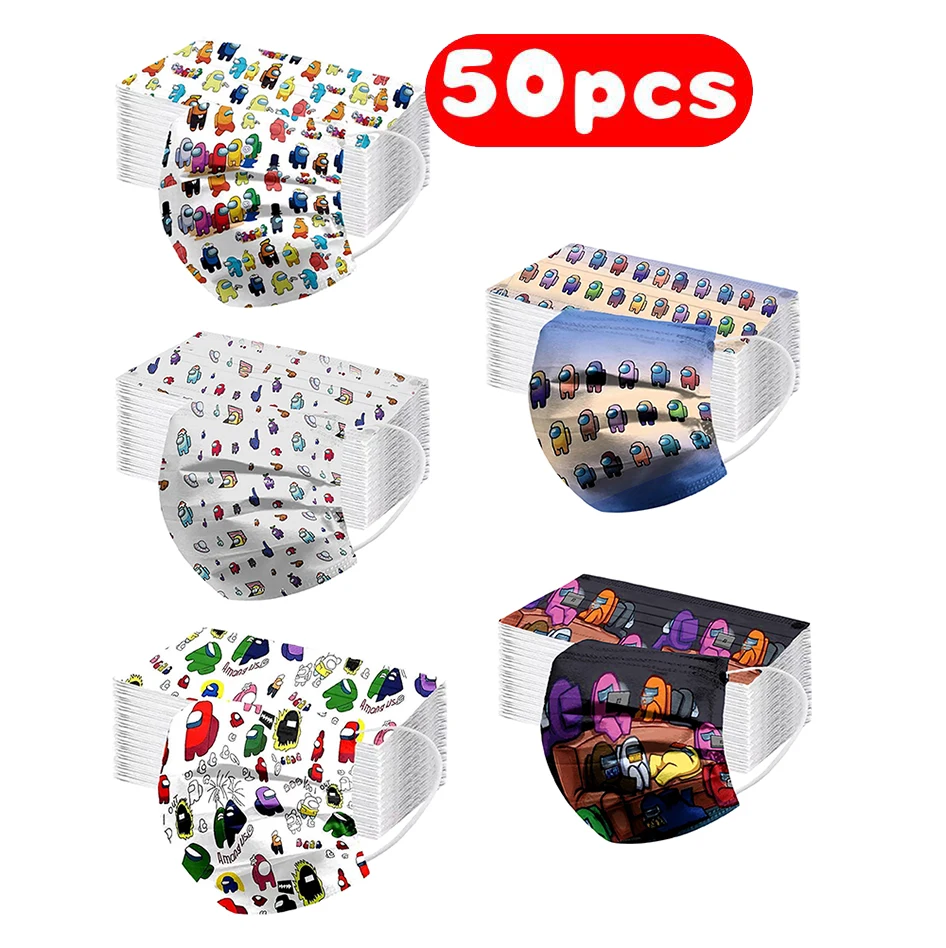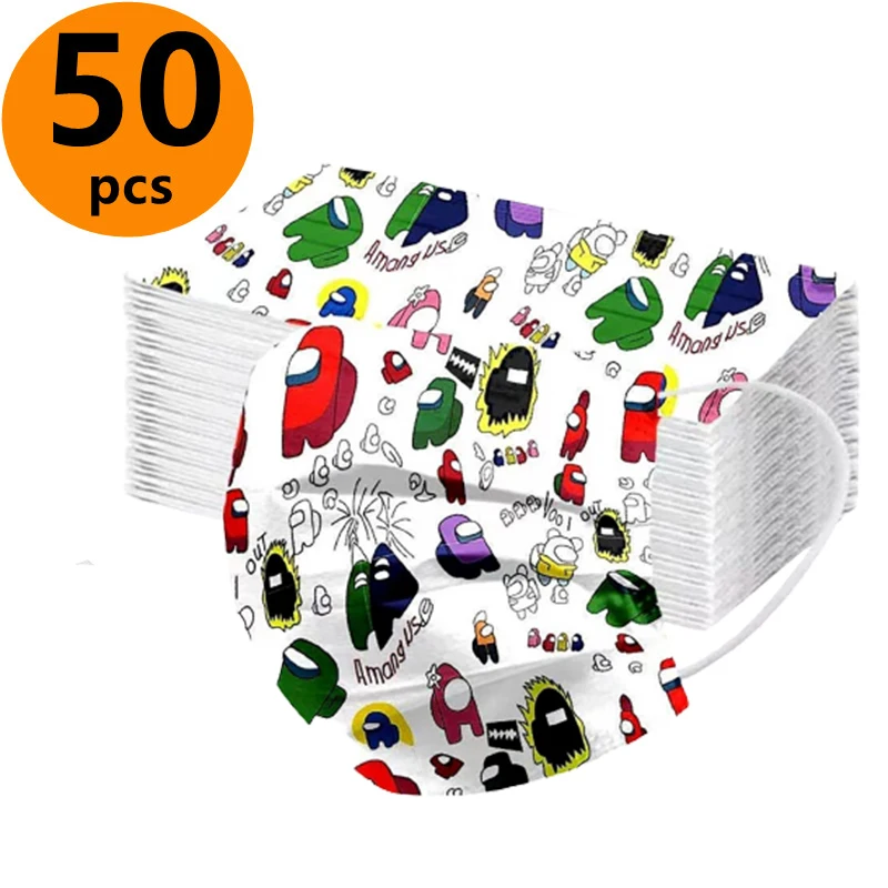50 шт. AmongUs Милая мультяшная одноразовая маска-убийца оборотенка...