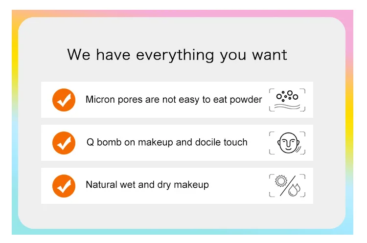 1. Инструменты для макияжа становятся больше после замачивания в воде, и макияж лучше подходит для кожи2. Поры меньше, и макияж даже3. Влажный и сухой. Используется для жидкостей, таких как основы, и порошков, таких как установка порошков4. Многогранный дизайн позволяет наносить макияж на 360 градусов без мертвых концов5. Он мягкий и хорошо восстанавливает, улучшая скорость макияжа6. Не ешьте порошок, сохраните свою косметику
