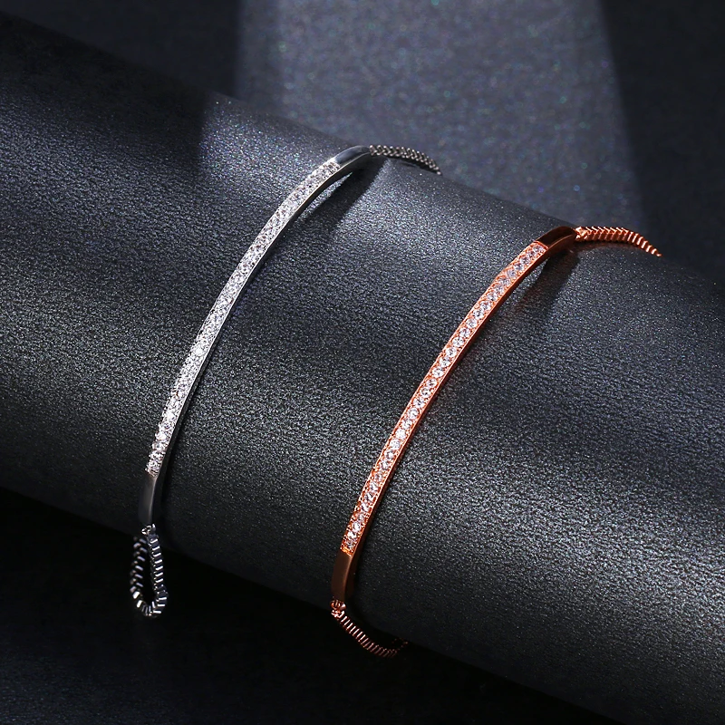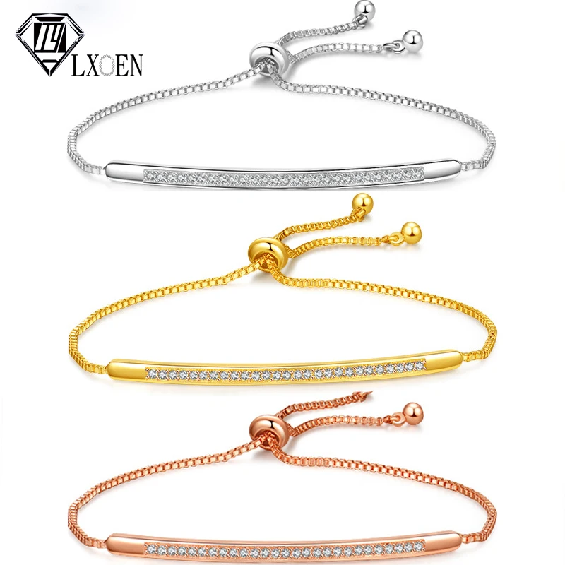 LXOEN регулируемый браслет серебряного цвета браслет для женщин завораживающий бар ползунок Блестящий CZ цвета розового золота ювелирные изделия Свадебная вечеринка