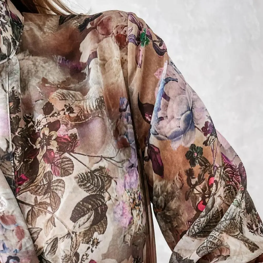 Женское винтажное платье-рубашка с цветочным принтом, V-образным вырезом и длинным рукавом