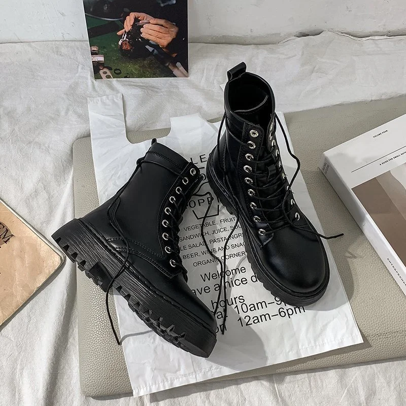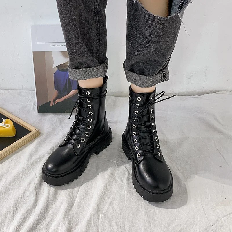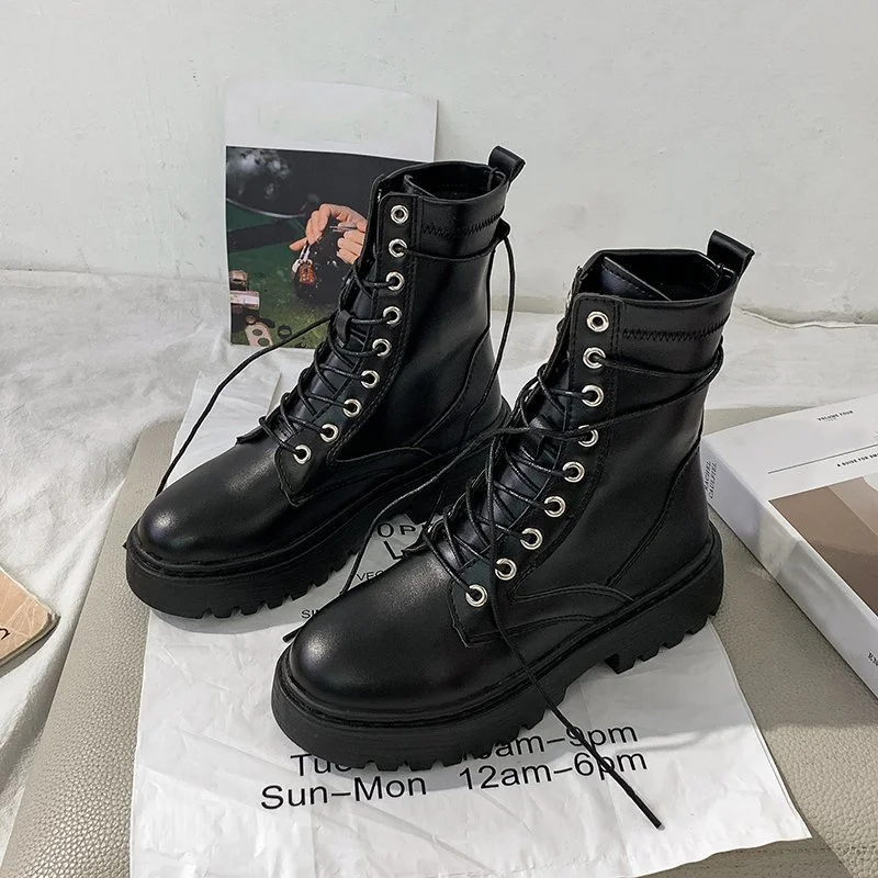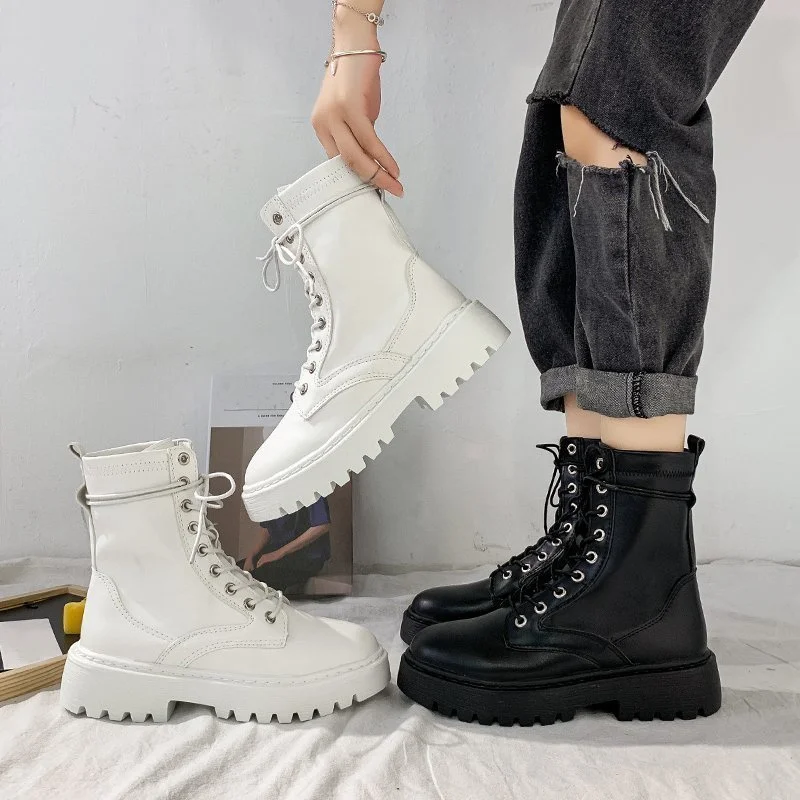 Женские ботильоны, осень 2021, новые модные белые кожаные мотоциклетные ботинки на платформе, готические черные женские короткие ботинки, Botas De Mujer