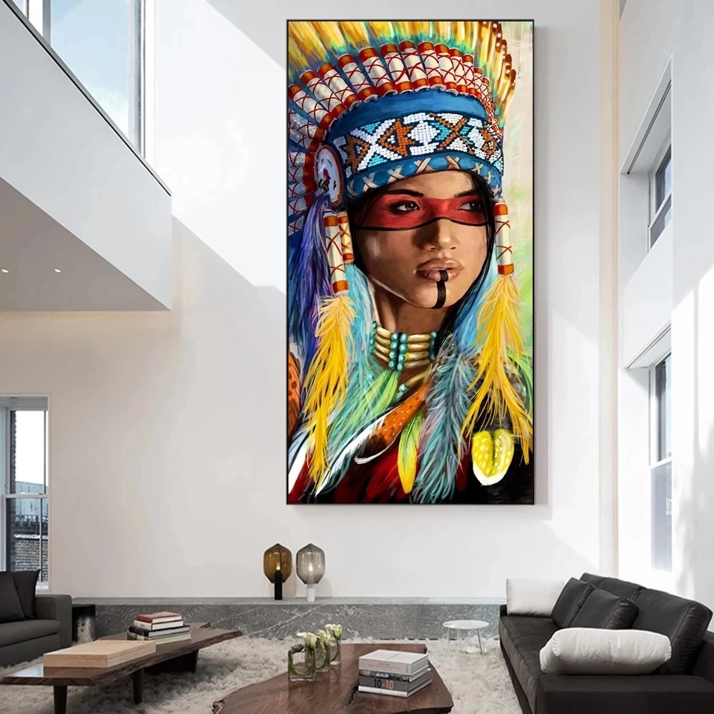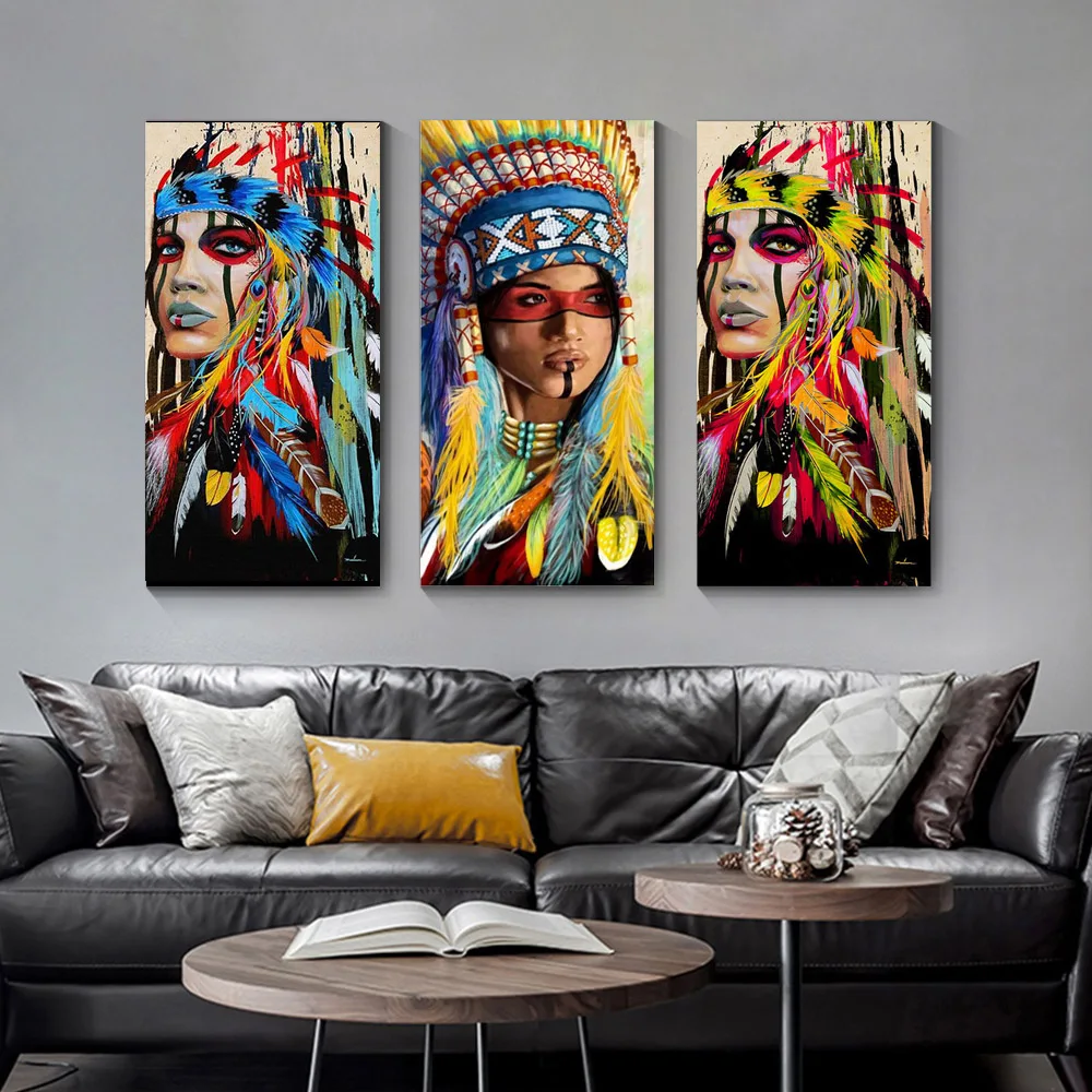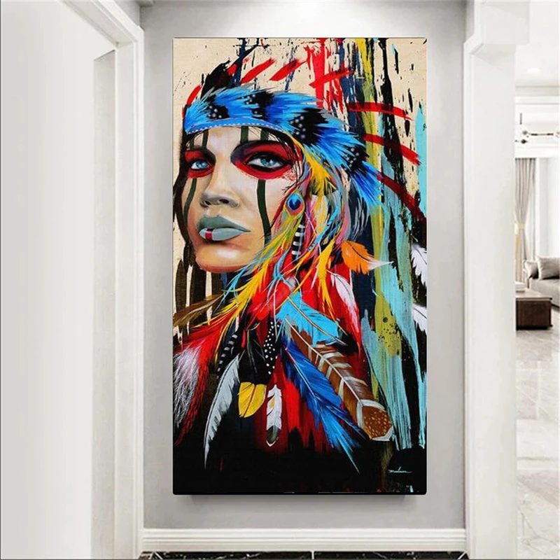 Картины на холсте красочные перья индийские женщины на стене художественные плакаты и принты женщина портрет настенные фотографии домашний декор