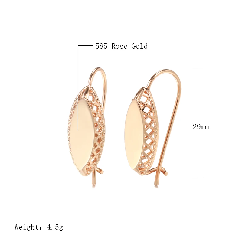 Новинка 585 г., винтажные глянцевые серьги из розового золота с вырезами, длинные серьги-капельки, золотые кольца, уникальные модные украшения