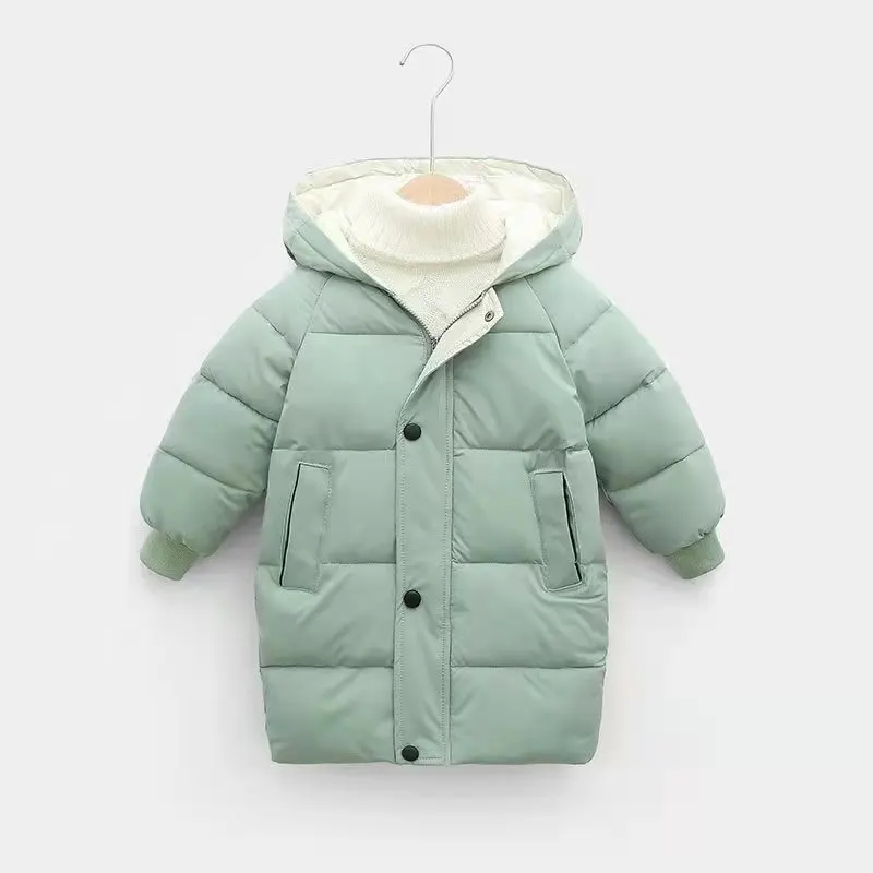 Детская пуховая куртка, зимнее пальто для маленьких девочек, однотонная парка для маленьких мальчиков, детская плотная одежда, зеленое искусственное пуховое пальто, пуховая куртка