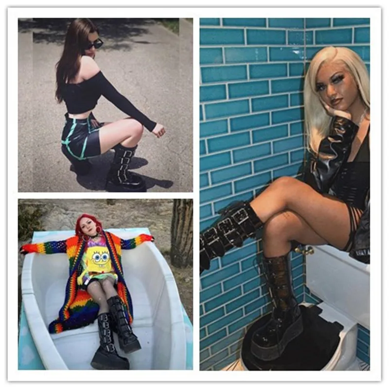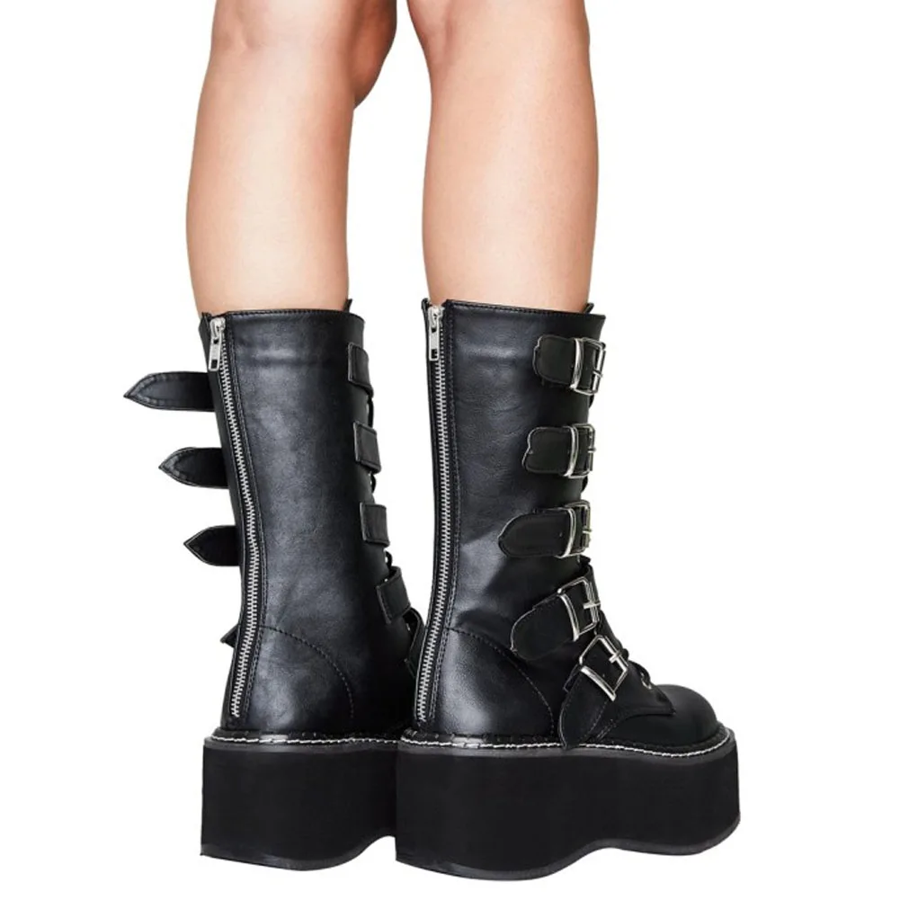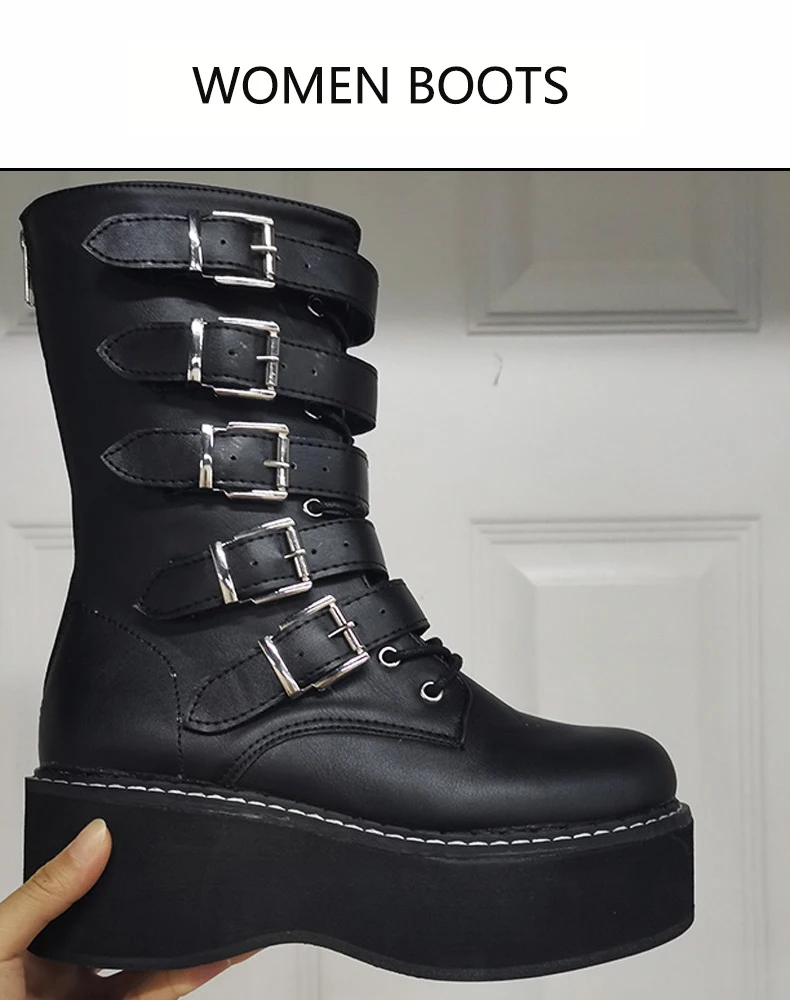 Женские полусапожки на толстой подошве, мотоциклетные сапоги в стиле панк, уличная модная женская обувь на танкетке, модные новые сапоги на молнии с пряжкой