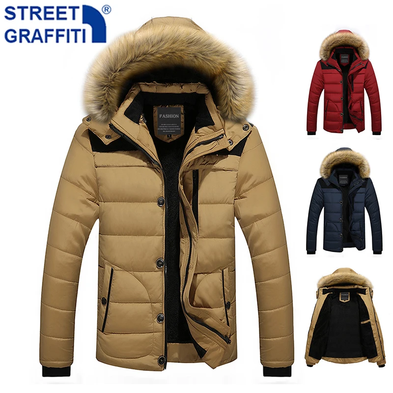 Мужская теплая флисовая куртка со съемной шапкой и меховым воротником
