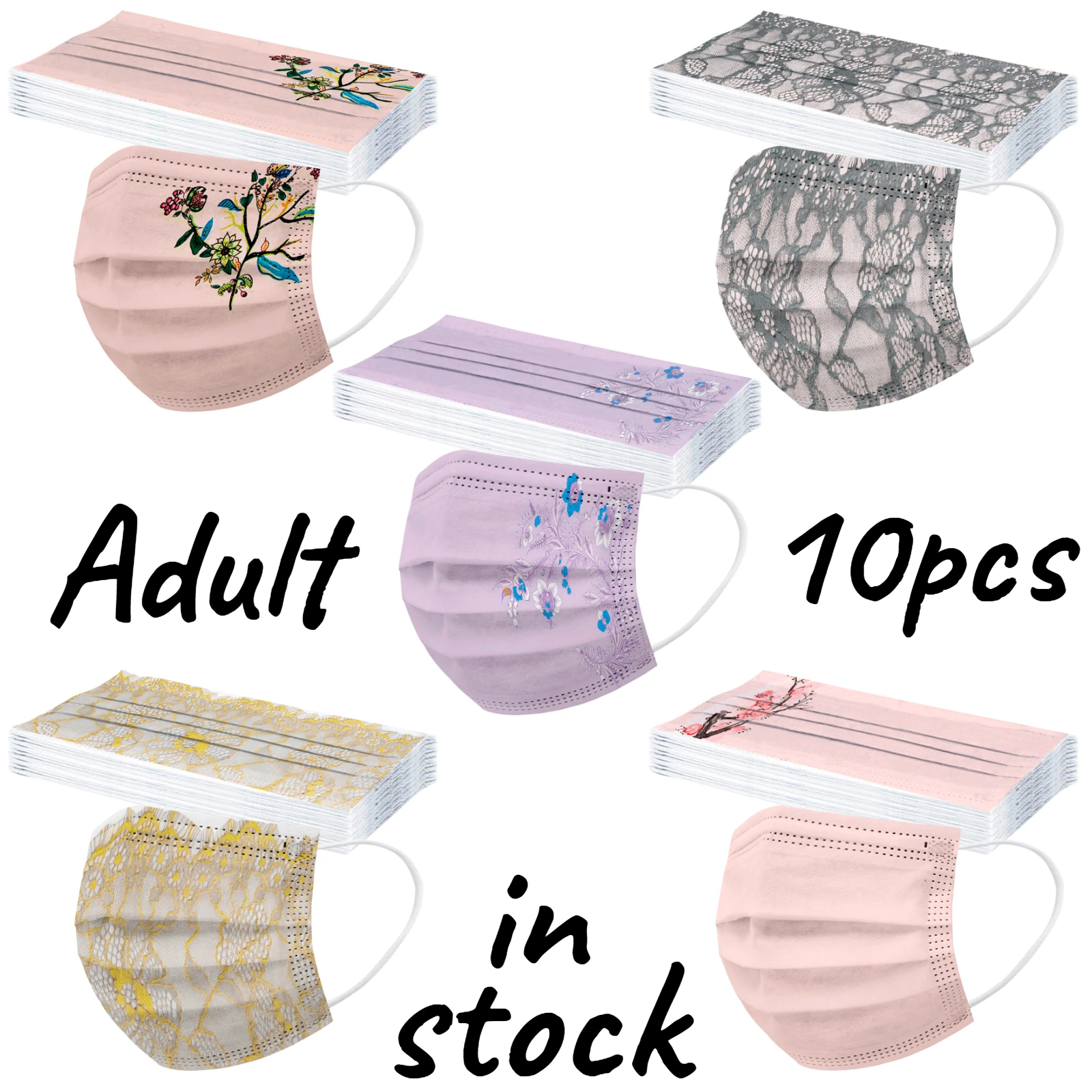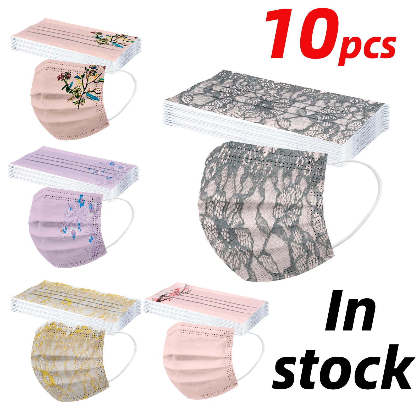 Маски с цветочным принтом 10 шт., 3-слойная одноразовая маска для лица из расплавленной ткани, с заушными петлями для защиты от пыли, маски для рта