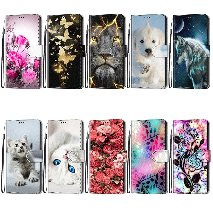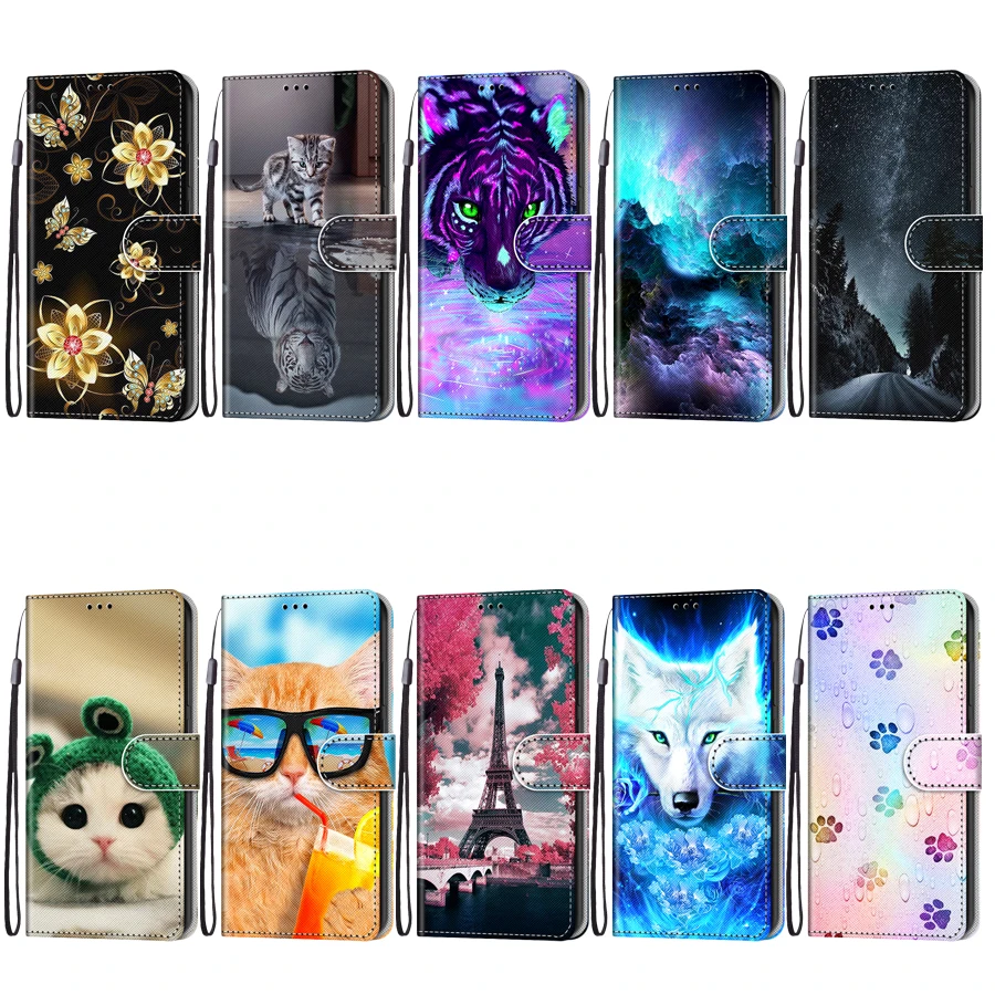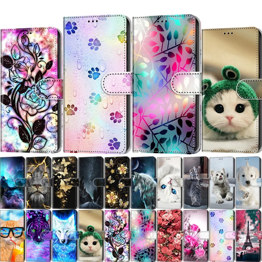 Кожаный чехол-книжка с рисунком для Huawei P30 P40 P50 Pro Honor 9S...