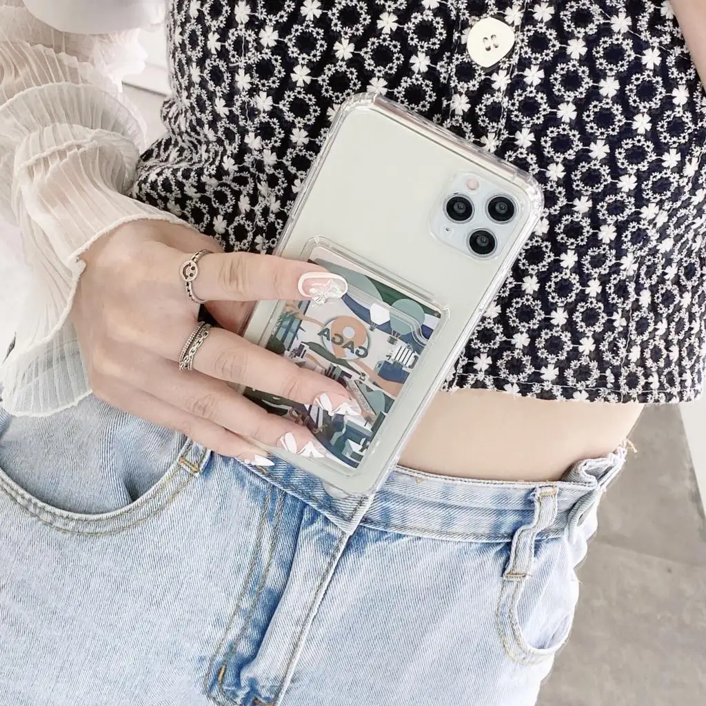 Прозрачный чехол-кошелек с держателем для карт для iPhone 13 Pro Max 11 12 Mini 7 8 Plus XS XR X SE 2020 противоударный Бампер Мягкий Прозрачный чехол