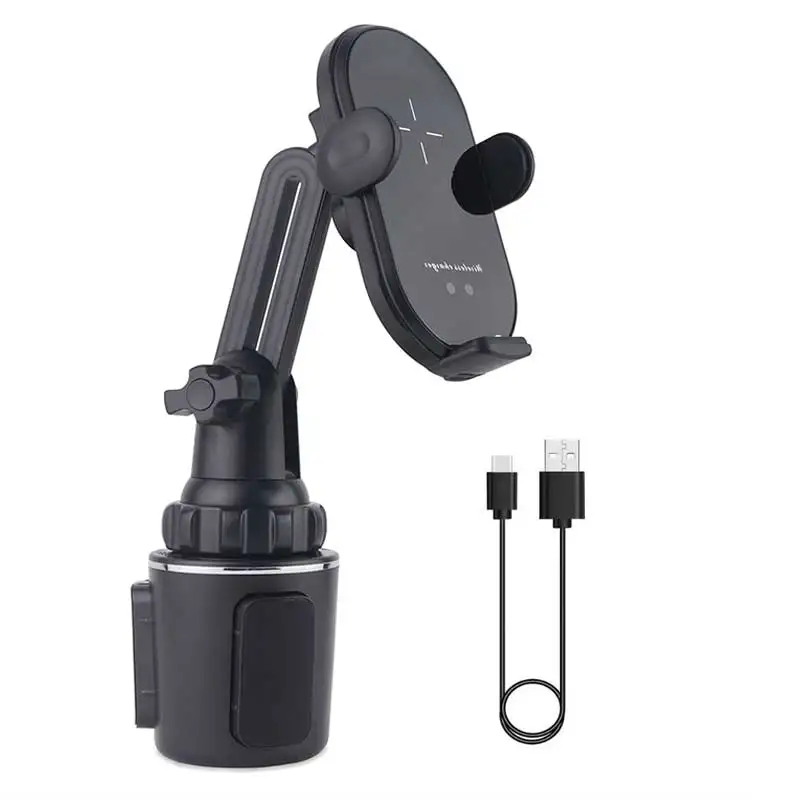 Универсальное беспроводное зарядное устройство Qi, 15 Вт, регулируемый на 360 градусов Автомобильный держатель для стакана, подставка для быстрой зарядки телефона, док-станция для сотового телефона