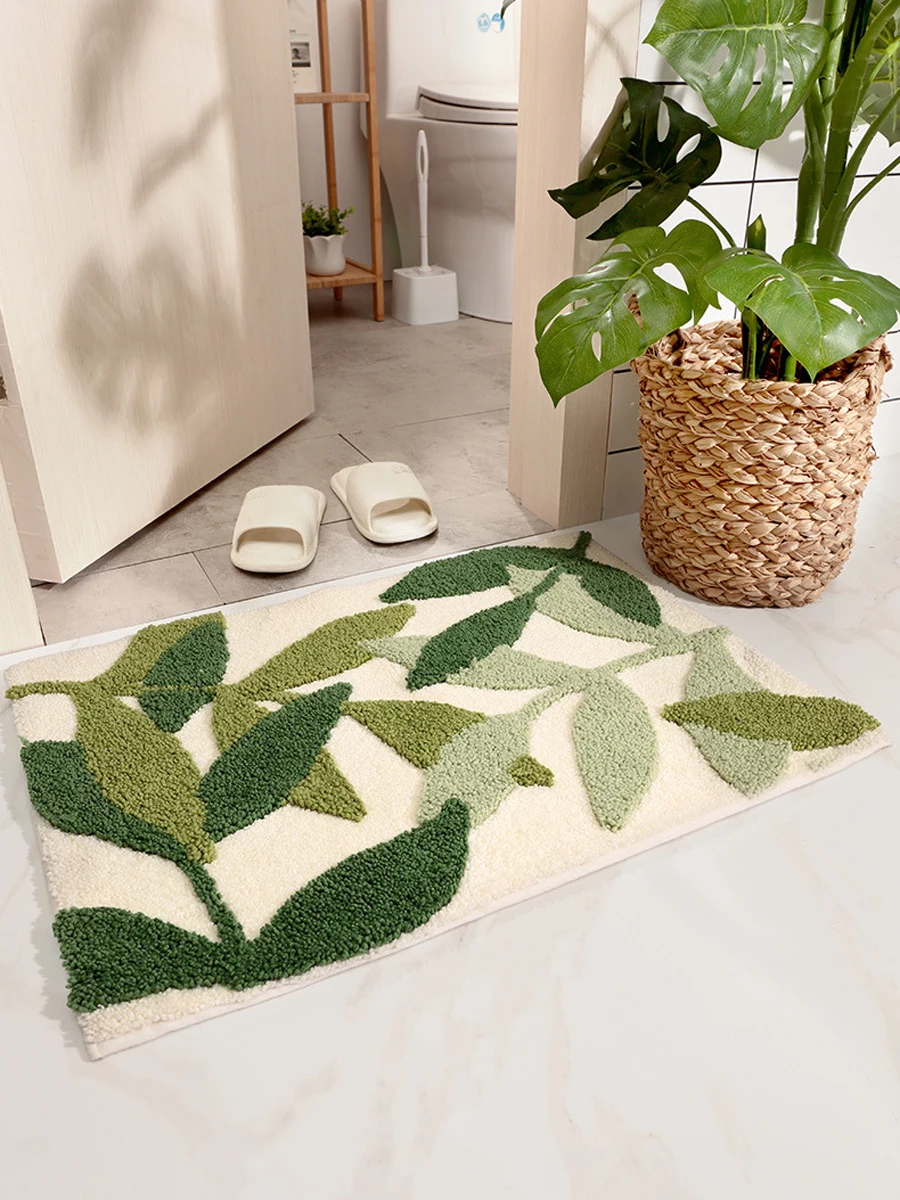 Простой флокирующий коврик для ванной YIMIN с принтом зеленых листь...