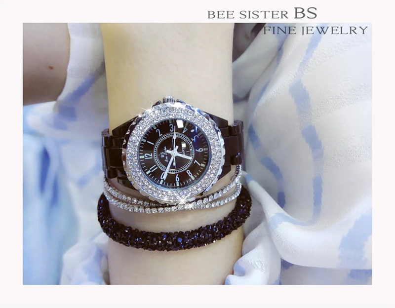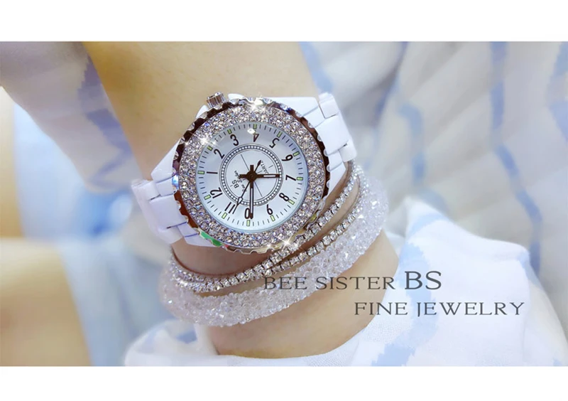 Часы женские кварцевые с керамическим ремешком, белые, со стразами