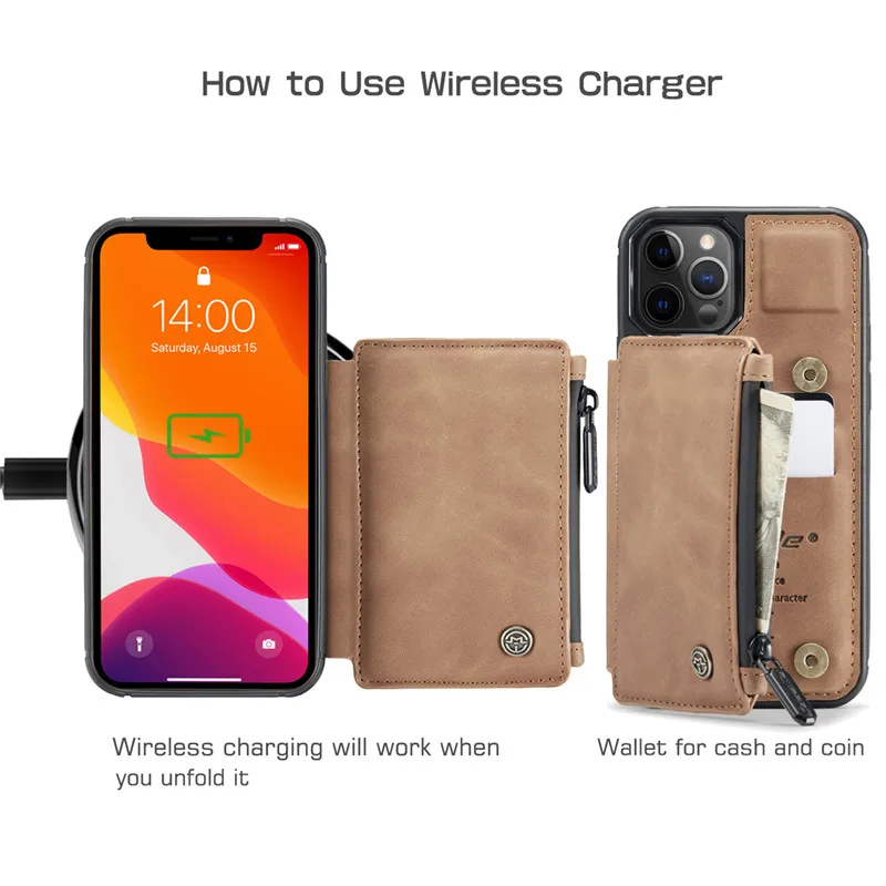 Многофункциональный чехол-кошелек на молнии для iPhone 12 11 Pro Ma...
