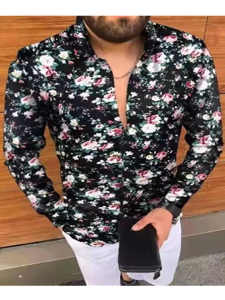 Рубашка мужская с длинным рукавом, блуза с цветочным рисунком, топ,...