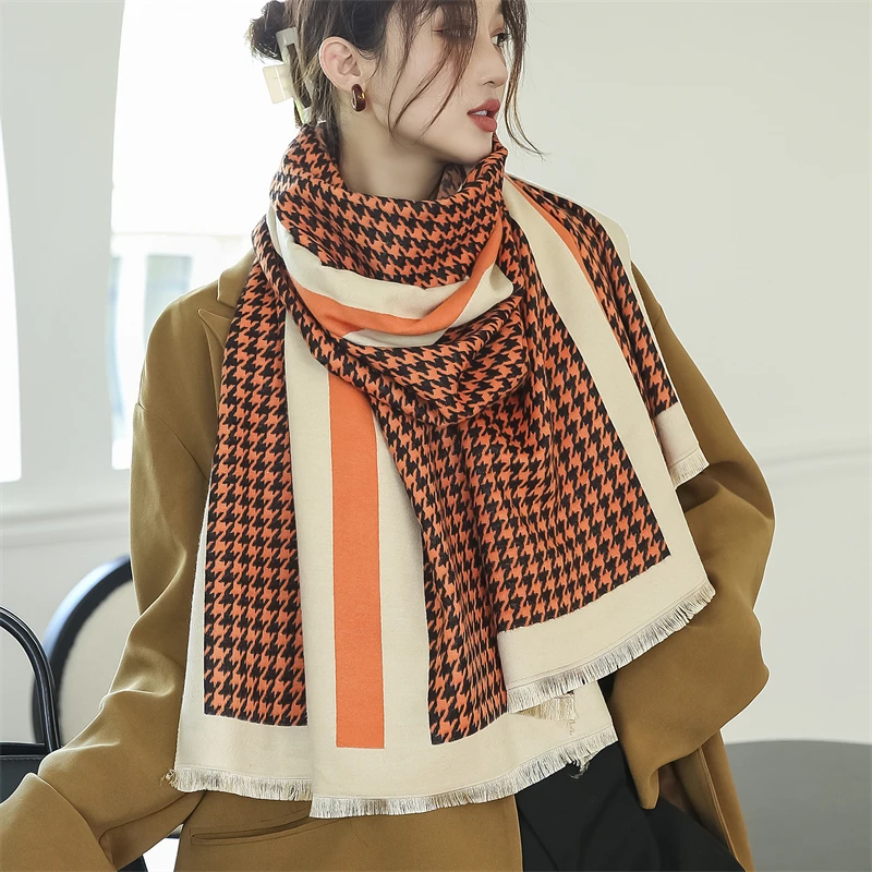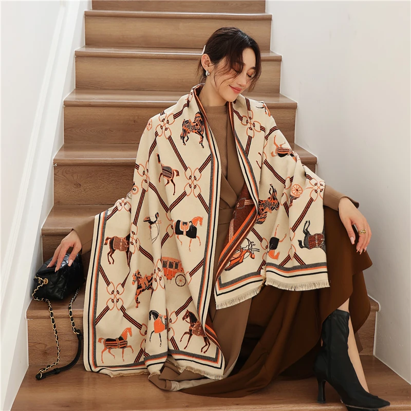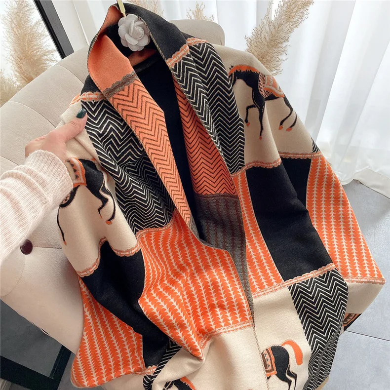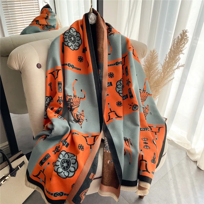 2021 роскошный женский зимний шарф с принтом, кашемировые шали, женские пледы, плотное теплое одеяло, роскошные брендовые двусторонние шарфы