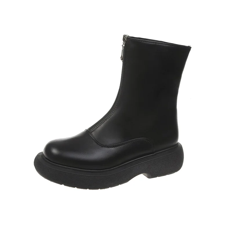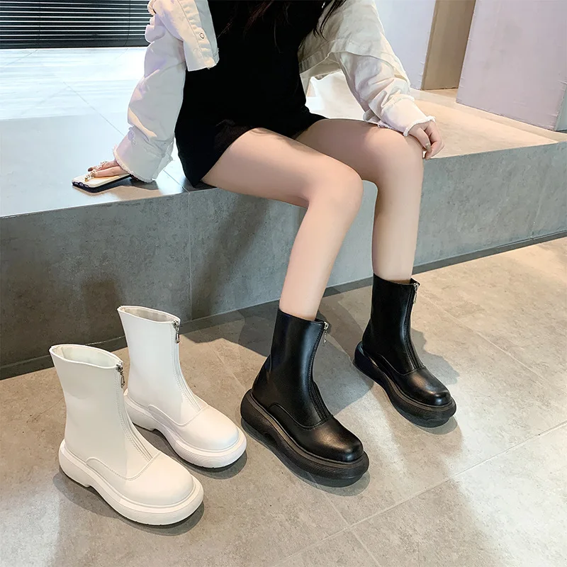Женская обувь, новинка зимы 2021, женские короткие ботинки на молнии спереди с большим круглым носком, ботинки на платформе и толстом каблуке, обувь на платформе